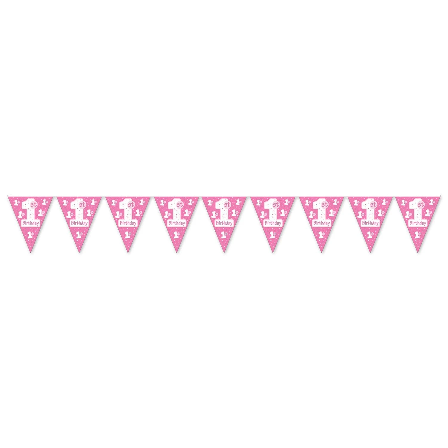 Product Description: This pink 1st Birthday Pennant Banner is a great addition to any first birthday celebration! The banner is made of all-weather material (plastic) and is 11 Inches x 12 ft in size. It comes with 12 pennants on one string, making it easy to hang and display. The banner is part of our 1st Birthday line and is sure to make any little one’s first birthday special. This banner is perfect for making a statement in any room and is sure to be a hit with all your guests. Plus, it ships from our Pennsylvania warehouse within one business day, so you can rest assured that it will arrive in time for your celebration. Make this 1st Birthday Pennant Banner a part of your special day!