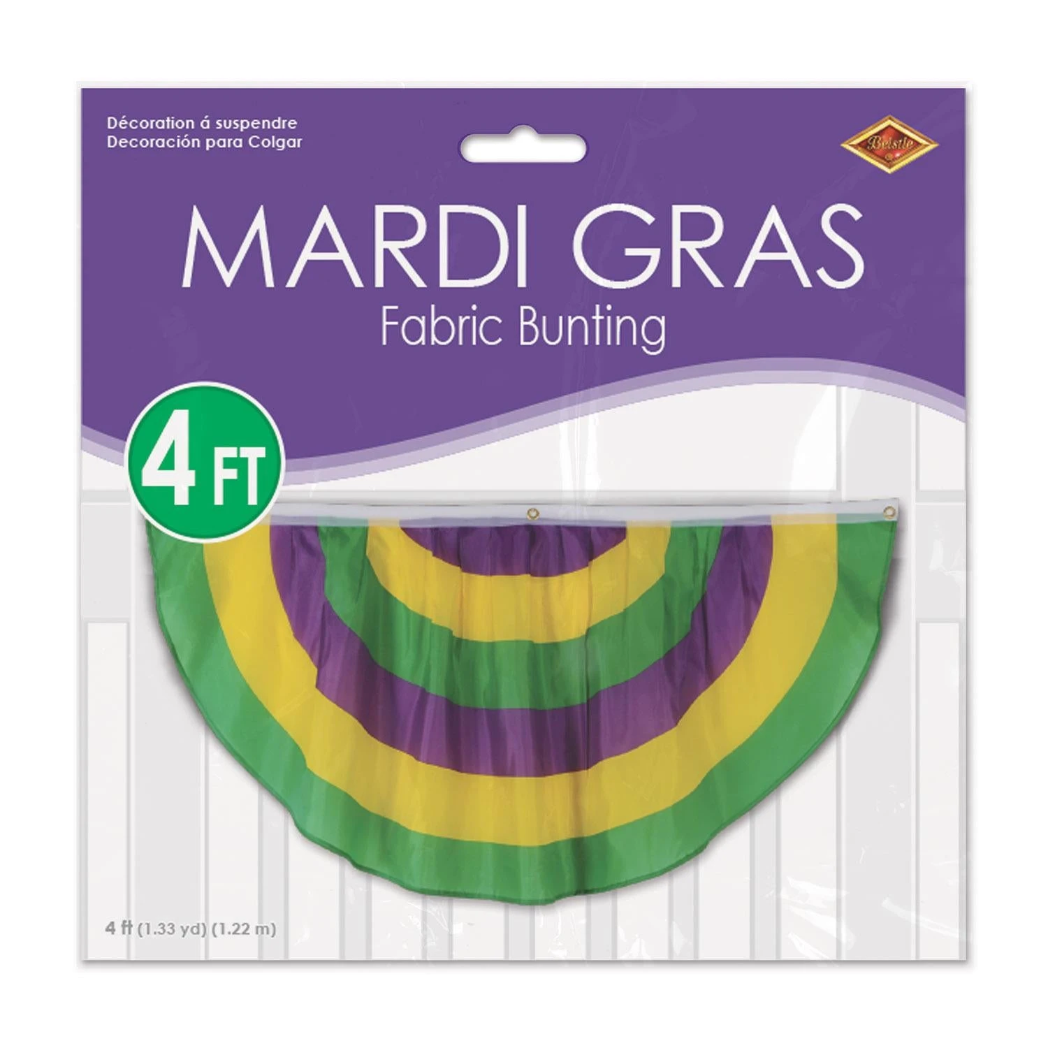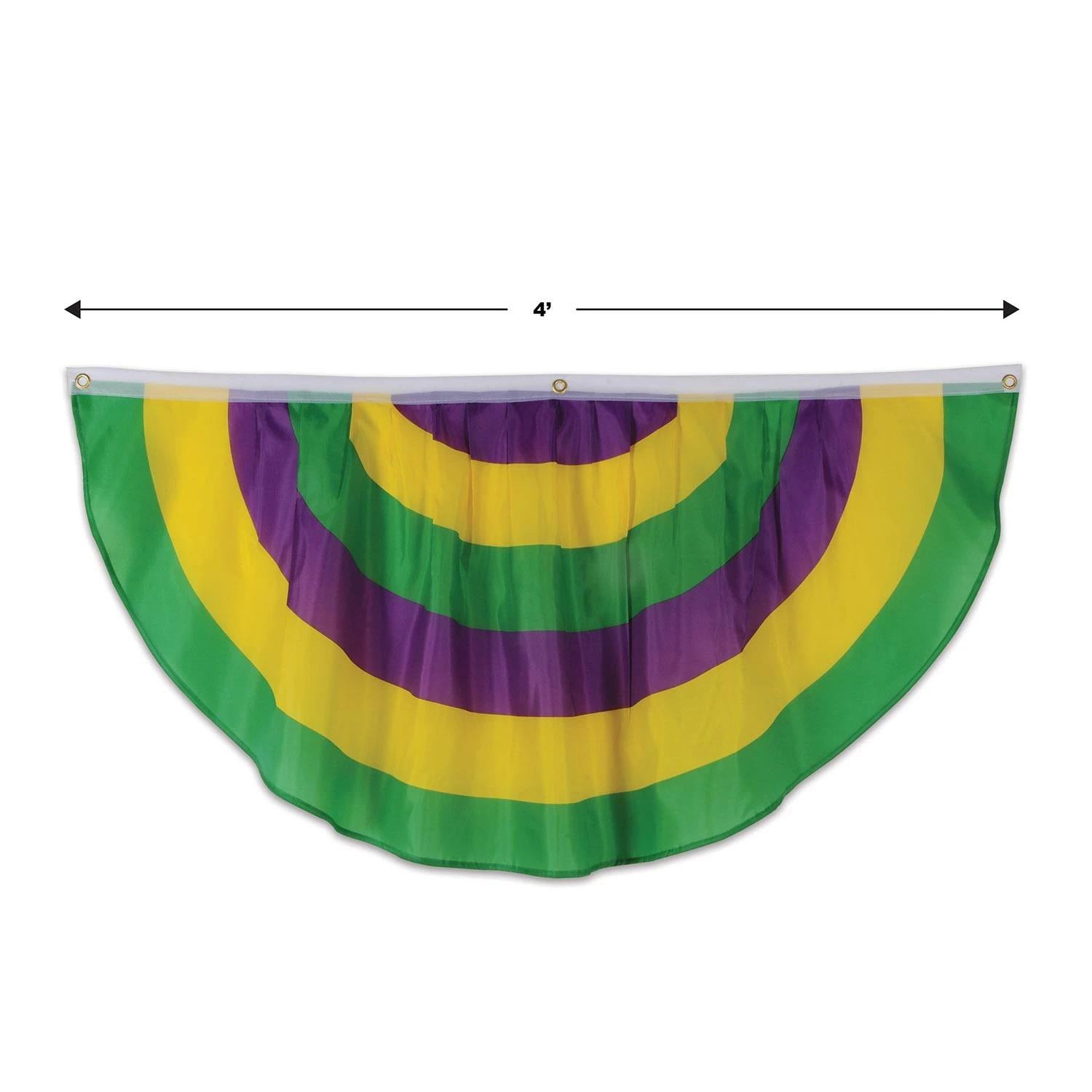 - Mardi Gras Bunting measures 4 feet wide by 24 inches long