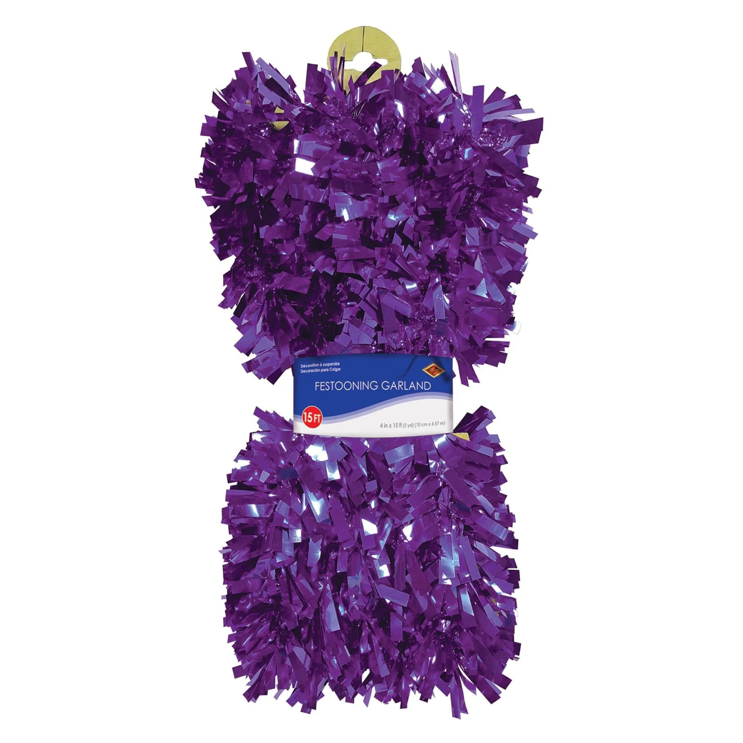 Product Description: This 6-Ply Metallic Festooning Garland is the perfect addition to your General Occasion party. The purple garland measures 4″ x 15′ and is made of 6-ply metallic material, making it a durable and eye-catching decoration. This item is sure to make your party stand out, and is perfect for a variety of occasions. It comes ready to use, with no assembly required. Plus, it ships from our Pennsylvania warehouse within one business day, so you can get it quickly. Add a festive touch to any event with the 6-Ply Metallic Festooning Garland from BulkPartySupplies.com.