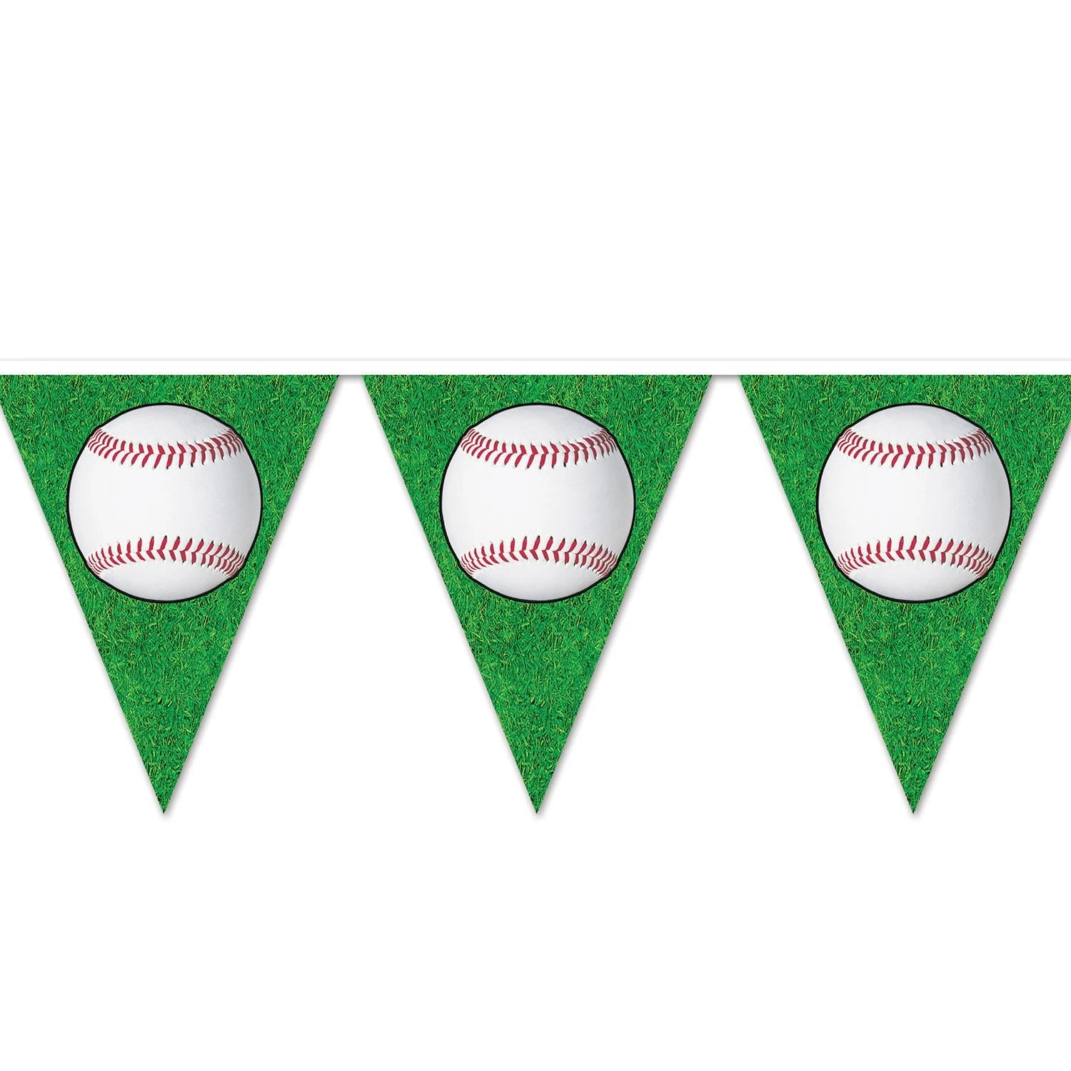 Product Description: Make your baseball party a hit with our Baseball Pennant Banner! This plastic all-weather 12-foot banner is perfect for any outdoor party and comes with 12 pennants. The banner measures 11 inches x 12 feet and is sure to be a hit with any baseball fan. It’s an easy way to show your team spirit. Plus, it ships from a Pennsylvania warehouse within one business day, making it perfect for last-minute planning. With the Baseball Pennant Banner, you can easily show your team spirit and make your baseball party a hit!