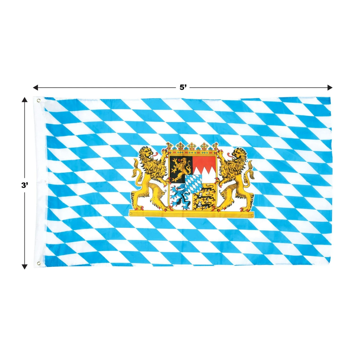 Product Description: The Bavarian Flag is the perfect addition to any Oktoberfest celebration. This 2-sided, 3′ x 5′ flag features two grommets for easy setup and is made from durable materials. It’s the perfect novelty item to show your Bavarian pride and spirit! This item ships from Pennsylvania warehouse within one business day and is part of our Oktoberfest line of party decorations and supplies. With the Bavarian Flag, you can add a touch of German culture to your Oktoberfest party. Show your Bavarian pride and make your Oktoberfest a memorable one with the Bavarian Flag.