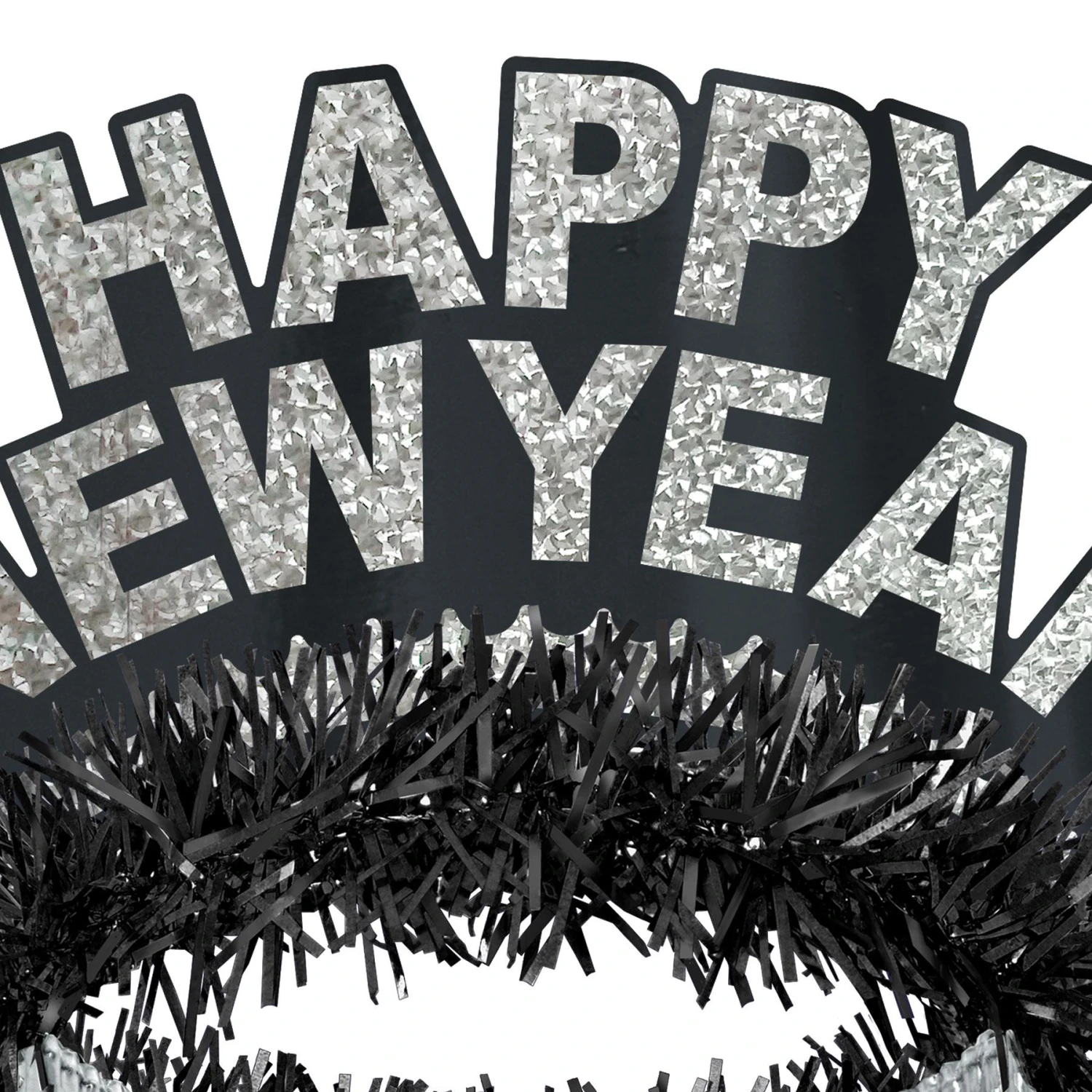 Product Description: Welcome in the New Year in style with the Black and Silver Happy New Year Regal Tiara from BulkPartySupplies.com! This stunning tiara is ideal for New Year’s Eve celebrations, with its fringed foil design that will make you look like a true regal on the night. This item is part of a larger range of New Year’s Eve theme party supplies from BulkPartySupplies.com, so you can coordinate your look with the rest of your decorations. The tiaras come in a package measuring 7x7x0.75 inches, and will be shipped to you from our Pennsylvania warehouse within one business day. With this Black and Silver Happy New Year Regal Tiara, you can be sure to start the New Year off in style!
