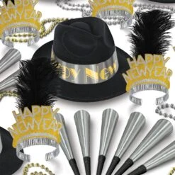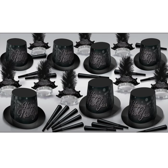 Celebrate in style with the Blackout Party Kit for 50 People from BulkPartySupplies.com! This complete party kit is designed to ensure everyone has a great time, featuring foil hi-hats, tiaras, and foil horns. Made from high-quality materials, the kit guarantees a memorable New Year’s Eve experience for your guests. With fast shipping from our Pennsylvania warehouse, you can be sure your party supplies will arrive in time. Make your celebration unforgettable with the Blackout Party Kit!