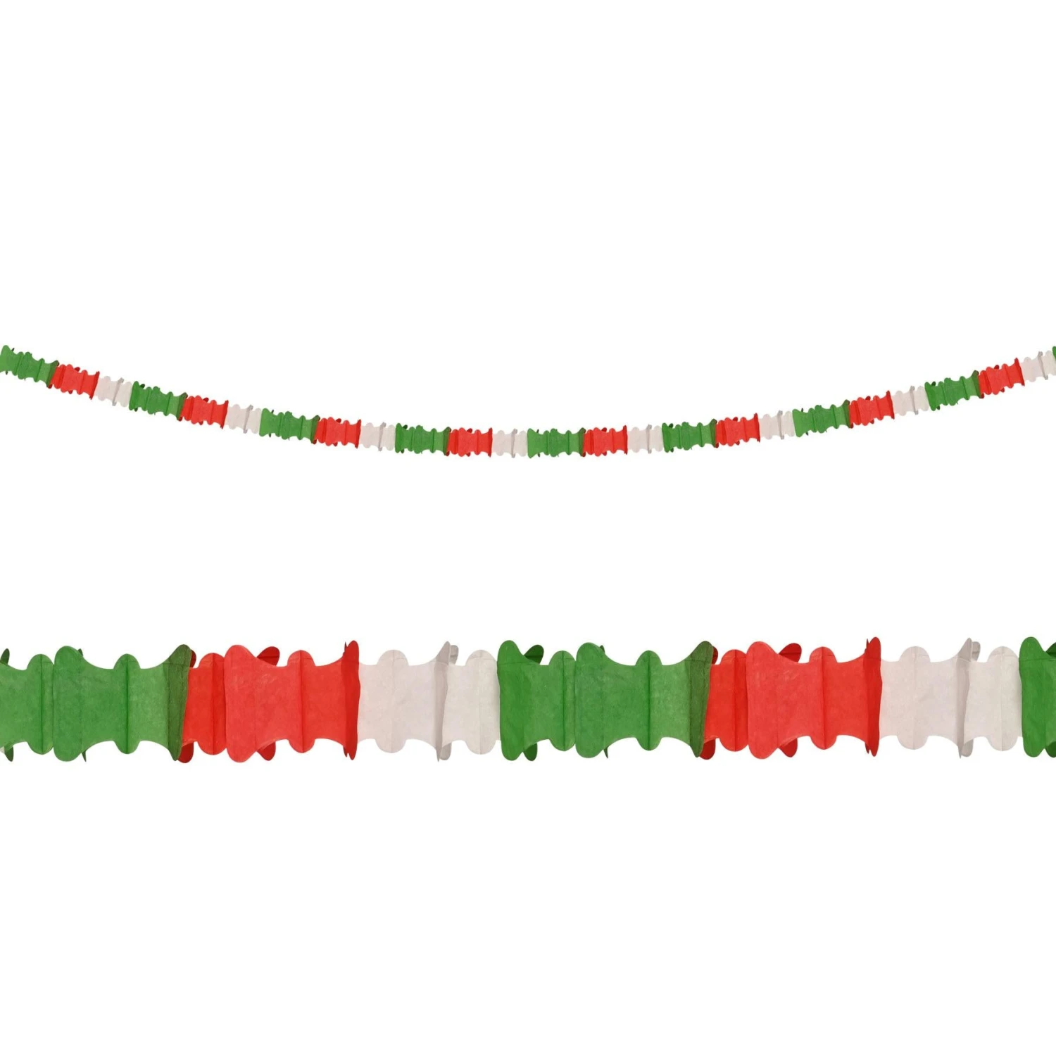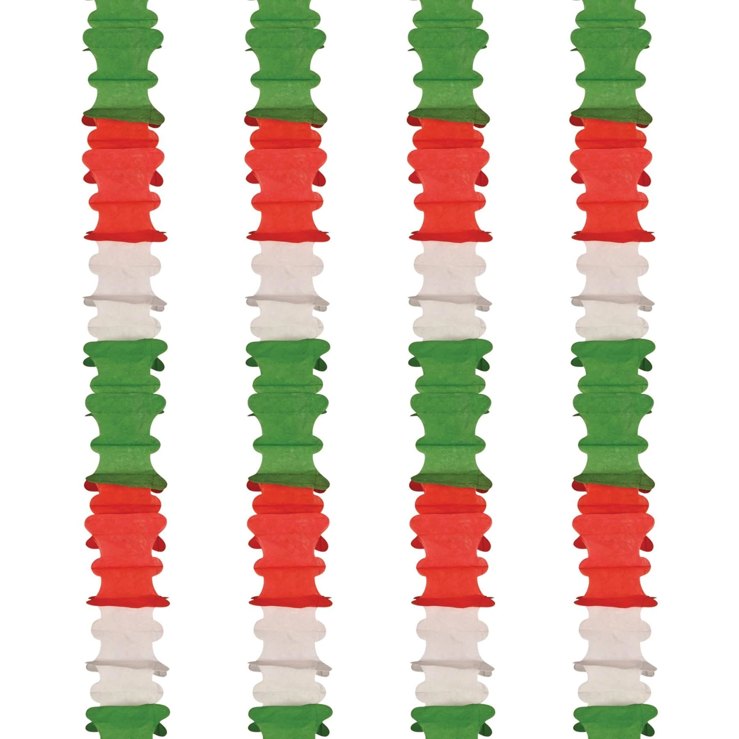 Bring the vibrant spirit of Fiesta and Cinco de Mayo to your party with these Ceiling Drops in red, white, and green! Each package includes 4 drops measuring 4.5 inches by 14.5 feet, making it easy to create a festive atmosphere.