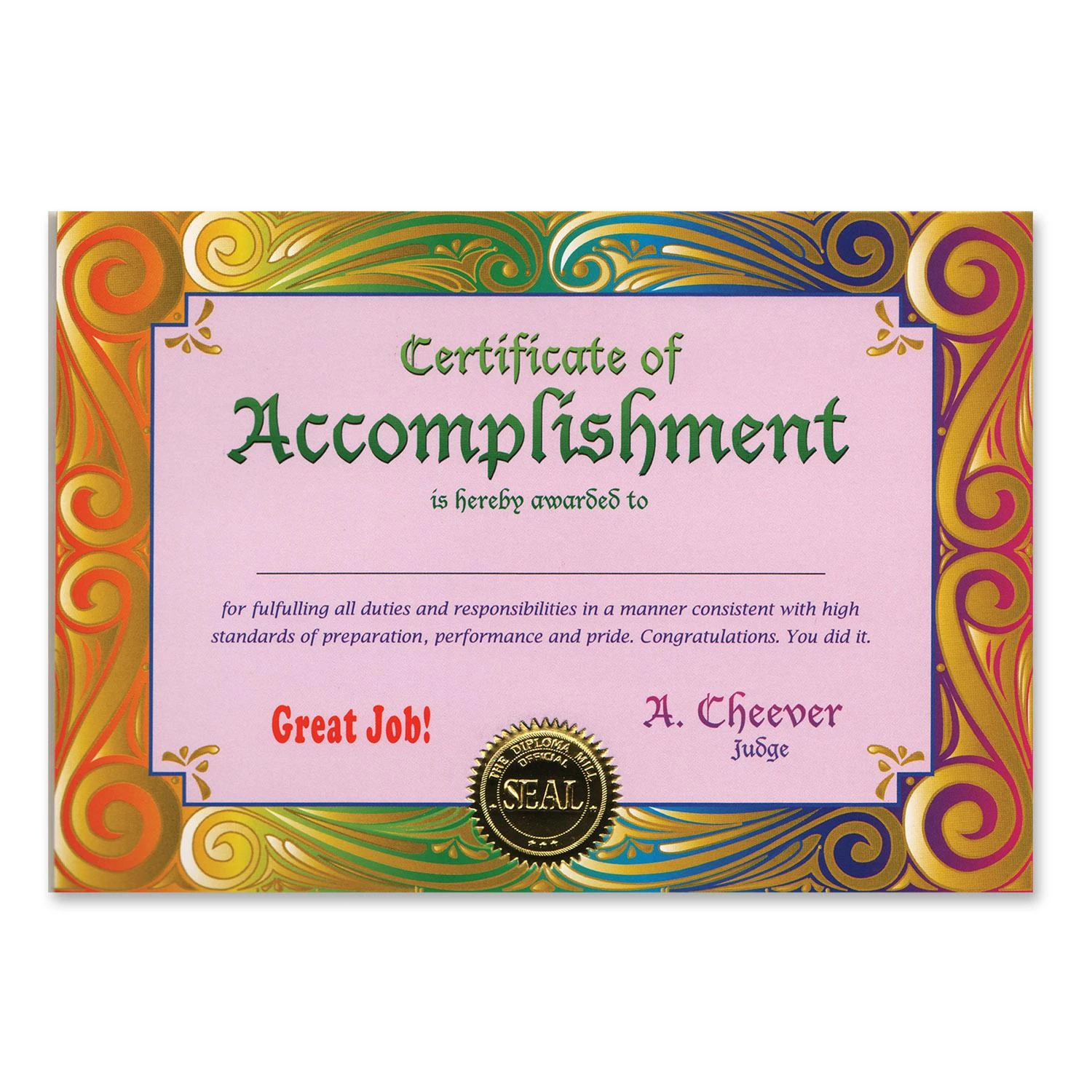 Product Description: This Certificate Of Accomplishment is the perfect way to recognize and reward students for their hard work and dedication. The size of this certificate is 5″ x 7″, making it the perfect size for framing and displaying in the home or classroom. This certificate is a great way to honor any student for their accomplishments, whether it’s for a job well done or for a special award. It’s also a great way to recognize a student’s hard work and dedication to their studies. This certificate is made from high quality materials and is sure to last for years to come. Plus, it ships from Pennsylvania warehouse within one business day, so you can get your certificate quickly and easily. Our Certificate Of Accomplishment is the perfect way to show your appreciation for a student’s success.