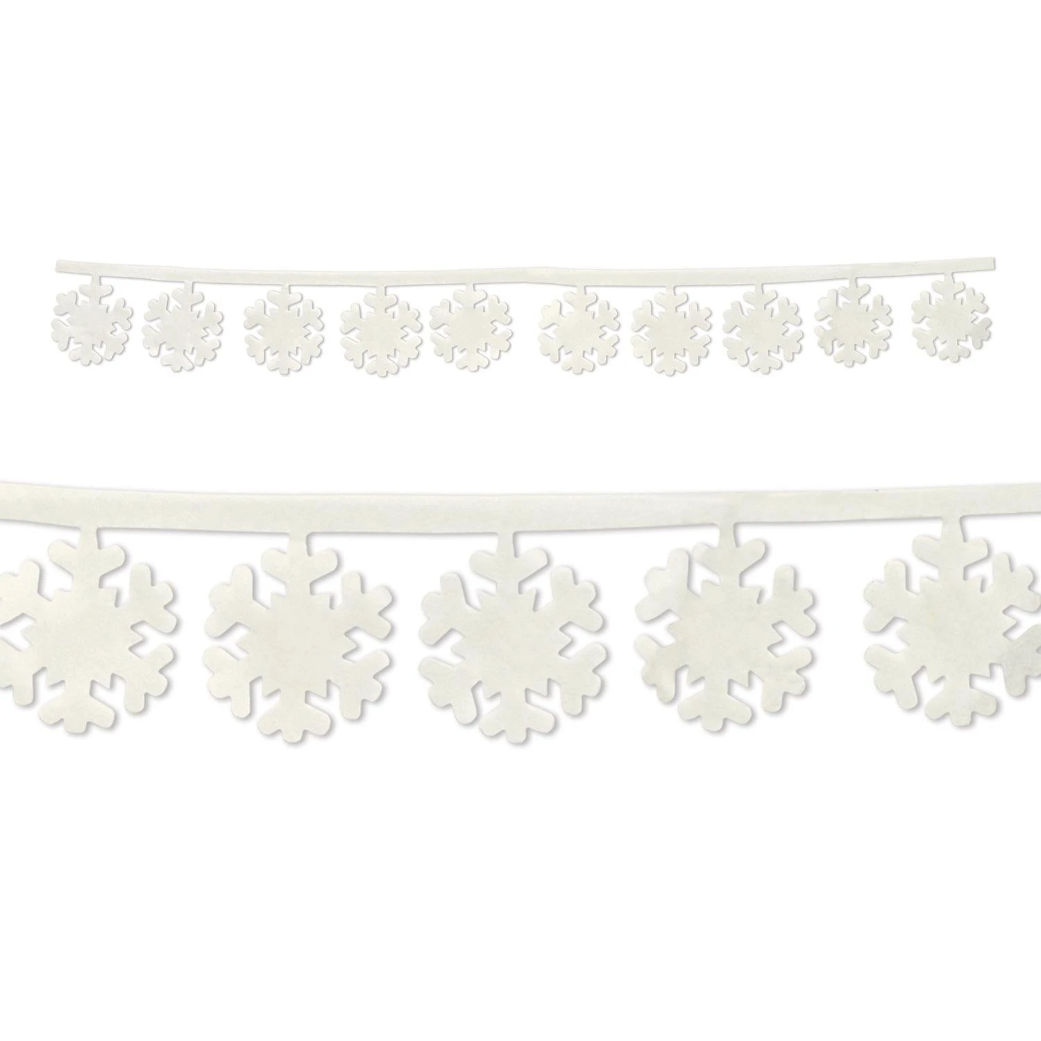 Transform your event into a winter wonderland with our Fabric Snowflake Garlands. Each package includes two garlands that, when connected, create a 7′ 10″ festive border, perfect for enhancing any Winter or Christmas-themed party. Made from lightweight fabric/silk-based material, these garlands are easy to hang and durable enough for any event. With fast shipping from our Pennsylvania warehouse, you’ll receive your garlands in time to quickly and easily decorate your space. Make your winter celebration magical with our Fabric Snowflake Garlands!
