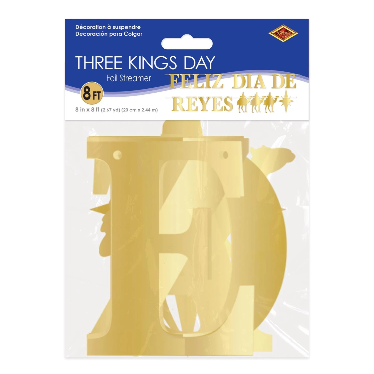 Add a festive touch to your Christmas or Winter celebration with this 8 inch x 8 inch Foil Three Kings Day Streamer! Designed for easy assembly, this bright and eye-catching streamer is ideal for honoring the Three Kings Day holiday. Each package contains one streamer, with 12 packages per case, making it perfect for larger gatherings. Celebrate the season in style with this charming holiday decoration!