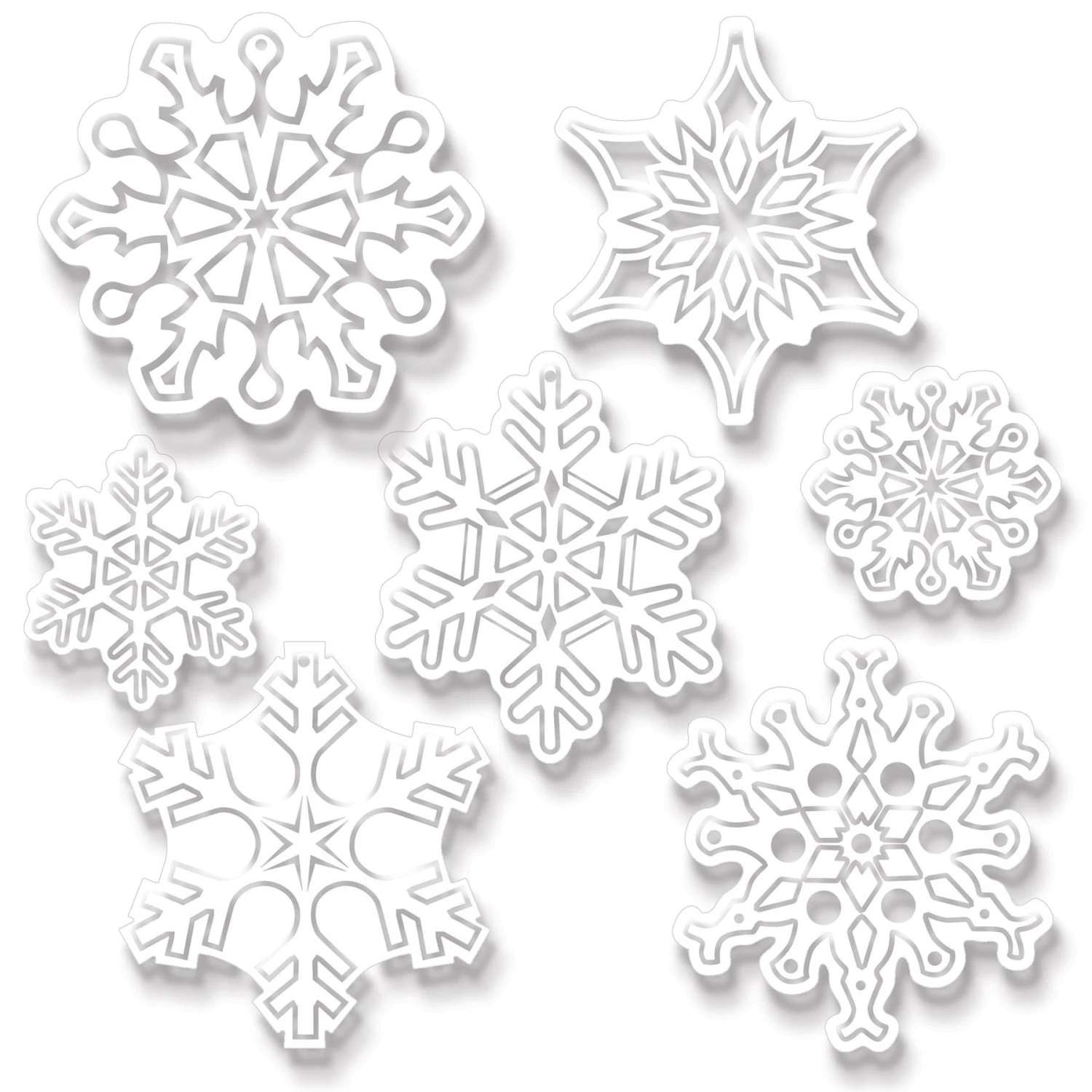 Product Description: Turn your holiday event into a winter wonderland with our Plastic Clear Die-Cut Snowflakes! This case includes 84 beautifully crafted snowflakes in sizes from 4.75 to 9.25 inches, providing a variety of options to create a magical, layered effect when hung from the ceiling or integrated into other decorations. Made from lightweight plastic, these die-cut snowflakes are perfect for transforming your space into a serene, frosty atmosphere that captures the essence of winter. With quick shipping from our Pennsylvania warehouse, these decorations arrive in time to bring festive charm to your celebration. Let your Christmas party sparkle with these enchanting snowflakes from BulkPartySupplies.com!