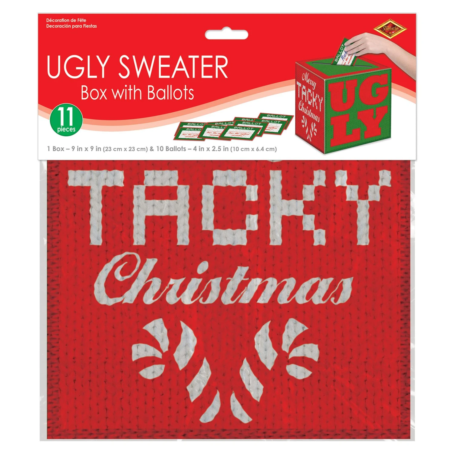 Add a fun twist to your Winter or Christmas-themed party with the Ugly Sweater Ballot Box from BulkPartySupplies.com! This 9″ x 9″ ballot box comes complete with 10 ballots, perfect for hosting an ugly sweater contest or adding a playful game element to your celebration. Simple to assemble, it’s ready to set up in minutes, so you can start the fun right away. Ideal for party games, voting, and even as a quirky decoration, this ballot box is sure to bring laughs and holiday spirit to your event. Shipped promptly from our Pennsylvania warehouse, you can count on receiving it quickly for your upcoming festivities. Make your party memorable with this unique and festive Ugly Sweater Ballot Box!
