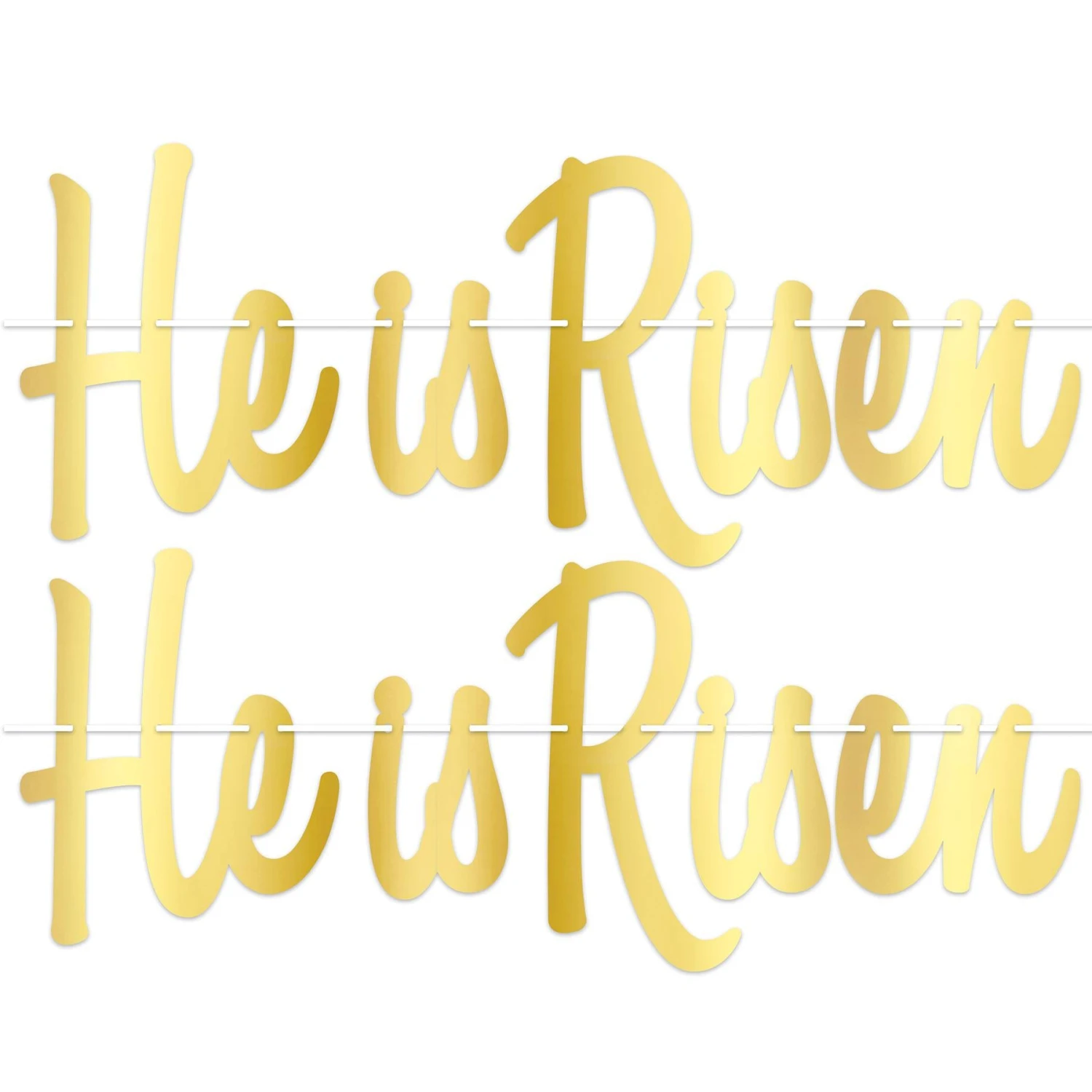 Celebrate Easter with this Foil He Is Risen Streamer! Easy to assemble, 9.75″ x 27″ size, and sold in packs of 1 with 12 packages per case. Perfect for Easter banners and streamers.