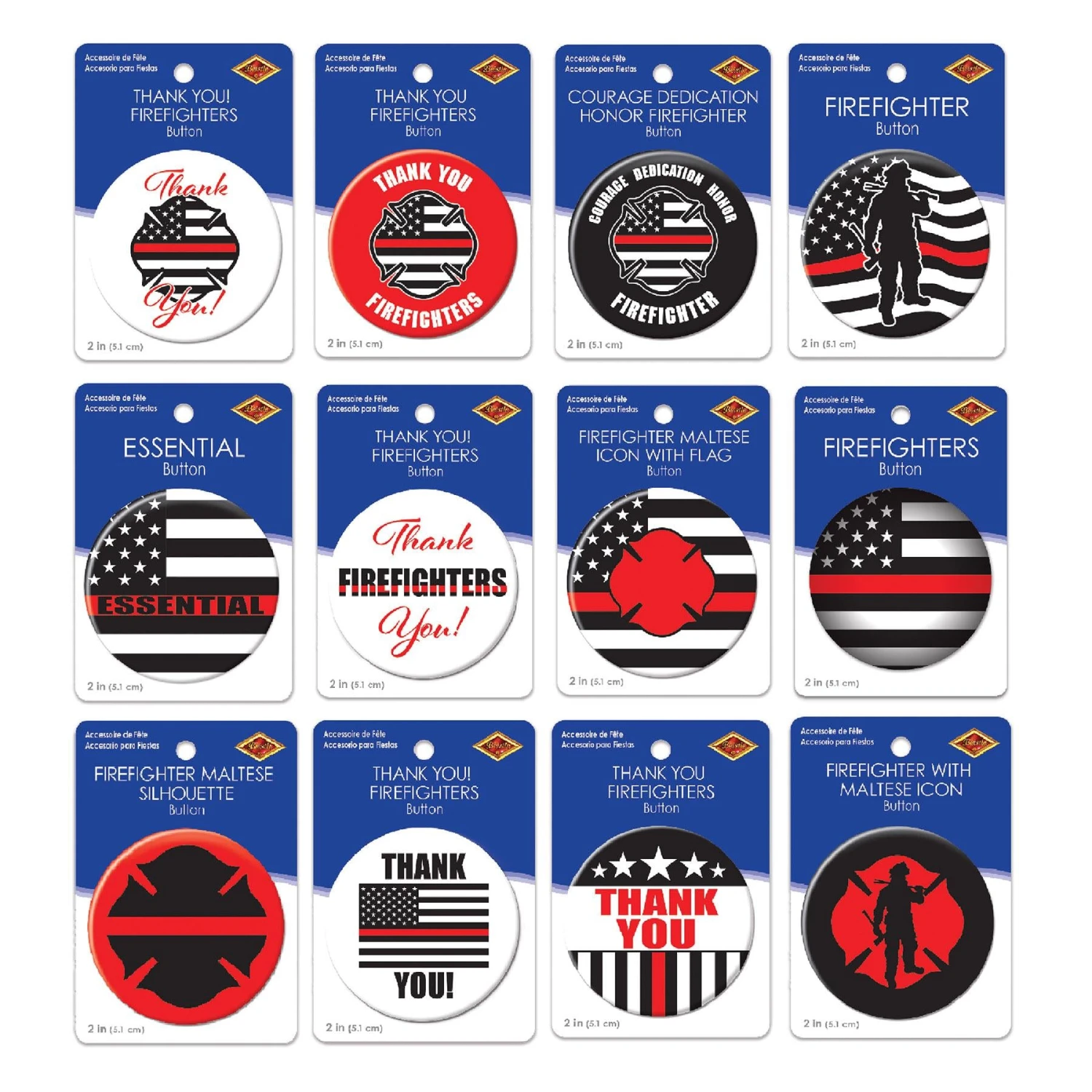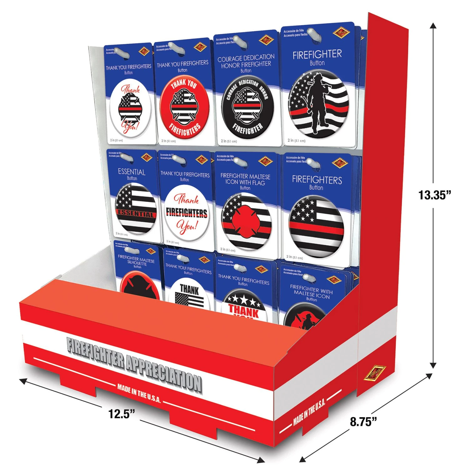 Product Description: Our Firefighter Counter Display – 108 Pieces is a great way to show your patriotism at any event. This display contains 108 individual items, including buttons, icons, and flags. Show your appreciation for firefighters with the Courage Dedication Honor Firefighter Button, Firefighter Button, and Firefighter Maltese Icon with Flag Button. The Essential Button and Firefighter Maltese Silhouette Button are also included. These retail displays come from Our Patriotic and 4th of July Party Supplies collection and will be shipped from Pennsylvania warehouse within one business day. Make your event more special with Our Firefighter Counter Display – 108 Pieces.