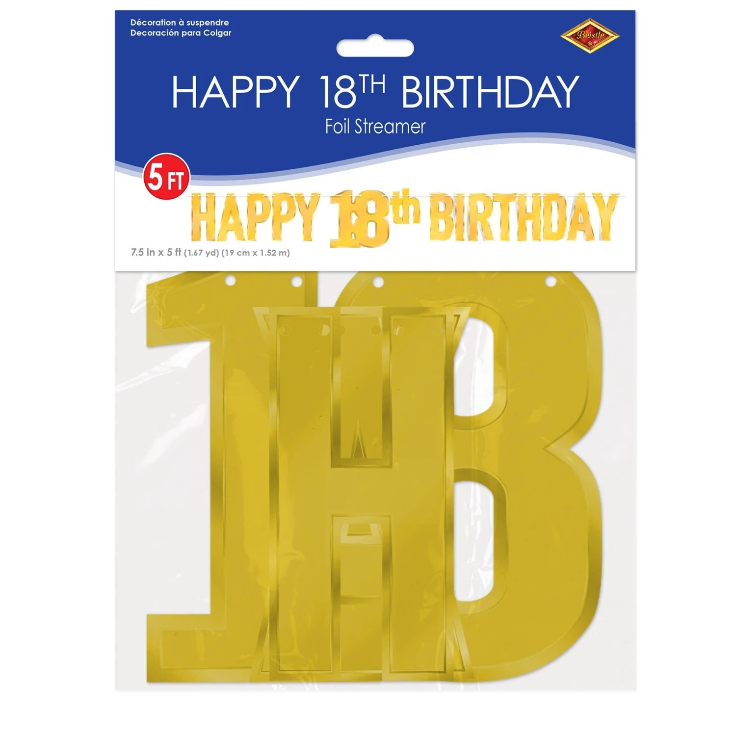 Foil Happy 18th Birthday Streamer gold – Elevate your 18th birthday celebration with our stunning gold foil streamer! Measuring 7.5 inches x 5 feet, it adds a touch of elegance to your party decor. Assembly is required, but the results are worth it. Each package includes 1 streamer, and with 12 packages per case, you’ll have everything you need to make your special day shine.