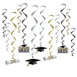Product Description: The Graduation Whirls are perfect for any graduation celebration! This package contains 12 whirls, with 6 featuring iconic graduation symbols and 6 plain ones. The whirls measure 17″ to 28.5″ in size, making them a great choice for hanging decorations. Whether you’re celebrating a high school graduation or college, these whirls are a great way to bring a festive atmosphere to the party. Plus, they ship quickly from our Pennsylvania warehouse, so you can get them right away! Make your graduation event a memorable one with the Graduation Whirls from BulkPartySupplies.com.