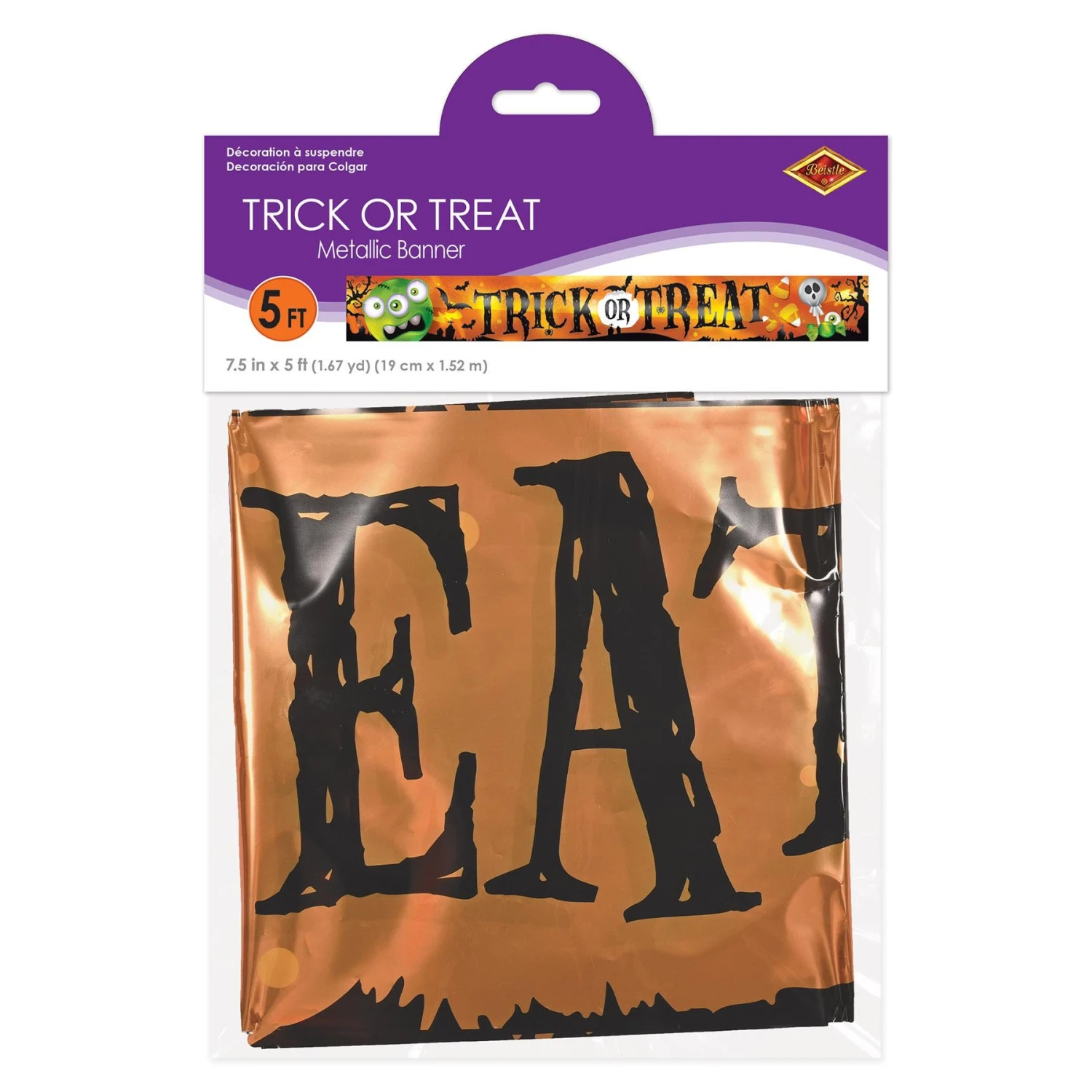 Make your Halloween spooktacular with our Metallic Trick Or Treat Banner! Printed 1-ply PVC, this 7.5″ x 5″ banner is perfect for decorating your home. Get 12 packages per case and make your Halloween shine!