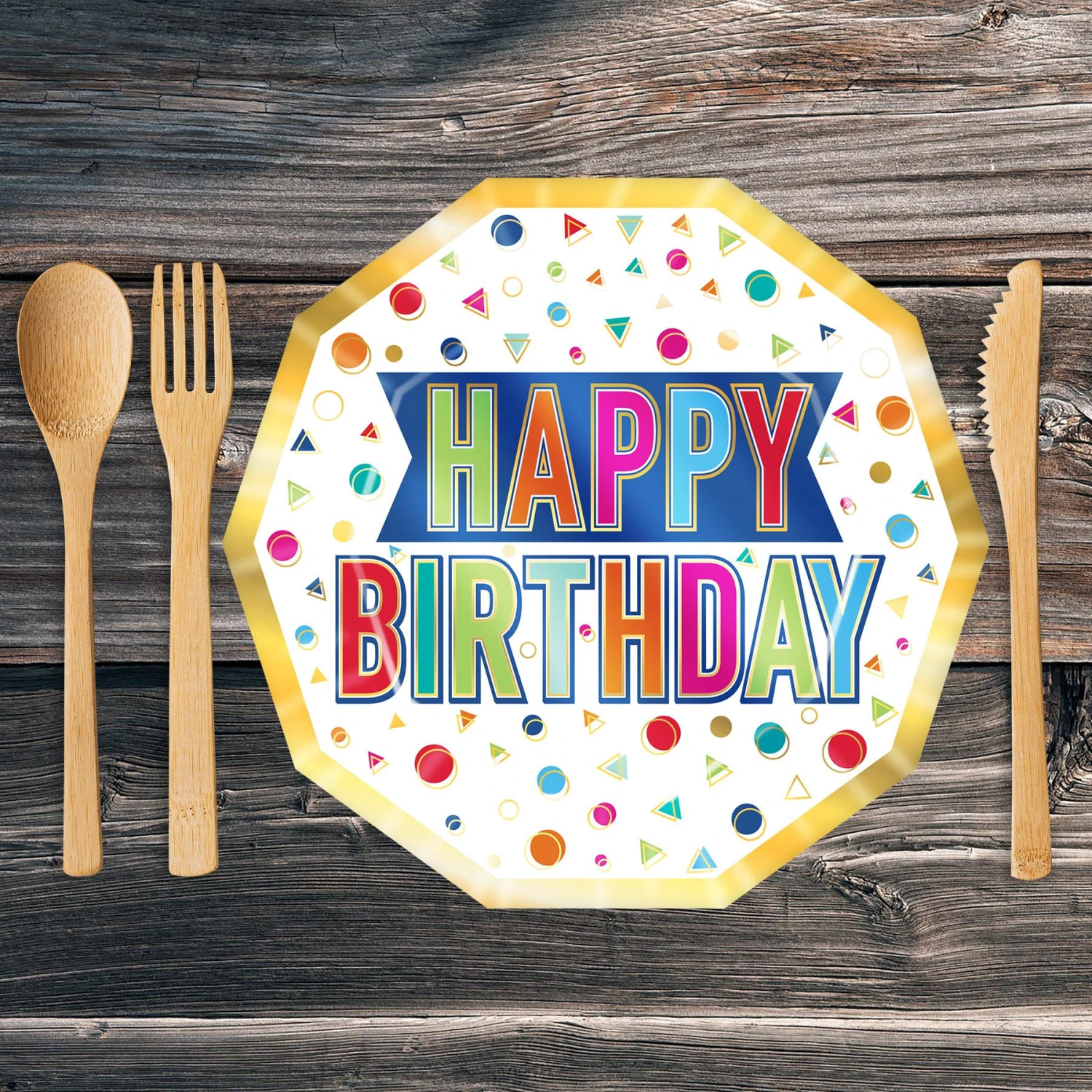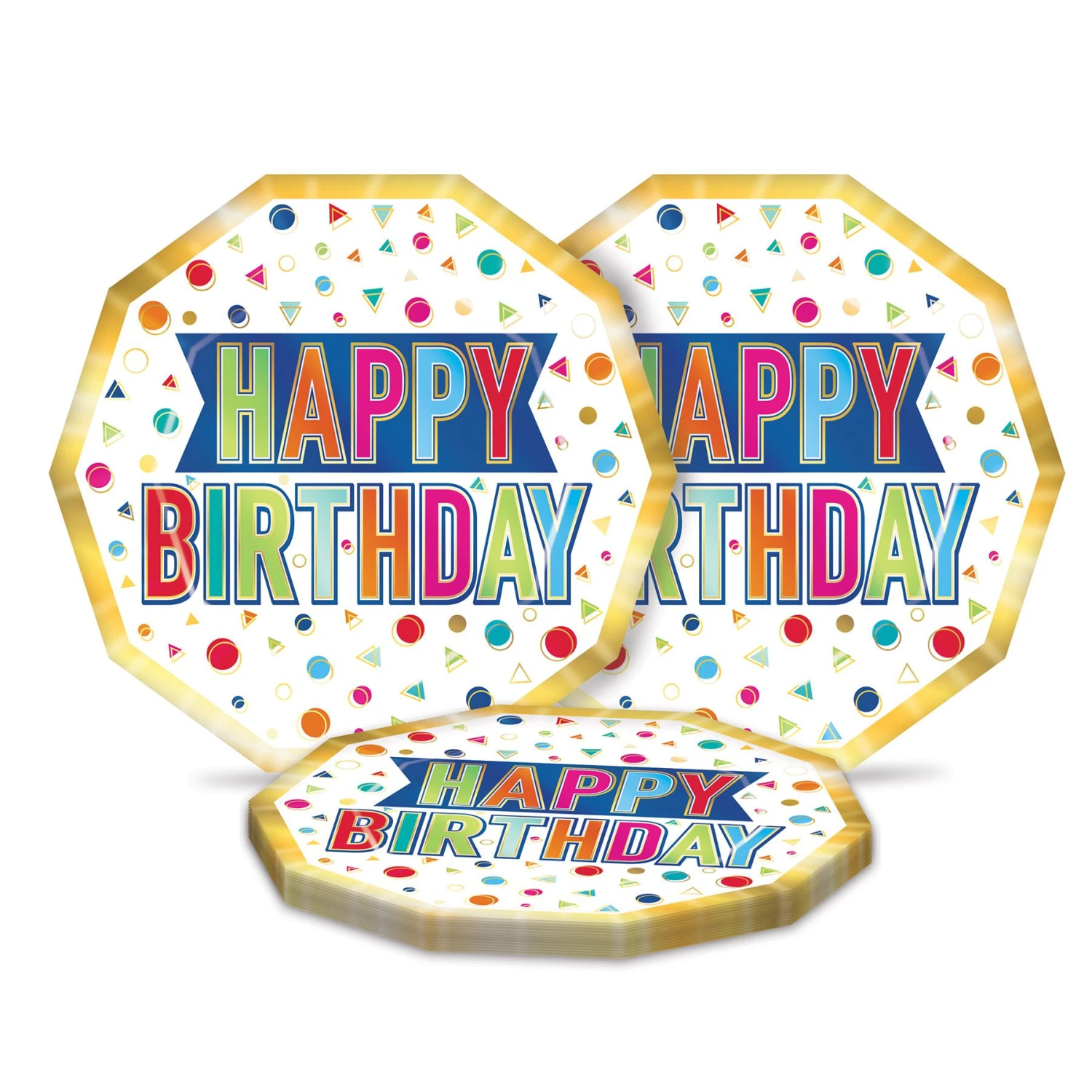 Happy Birthday Party Decagon Paper Plates 9 Inch (96 Per Case)