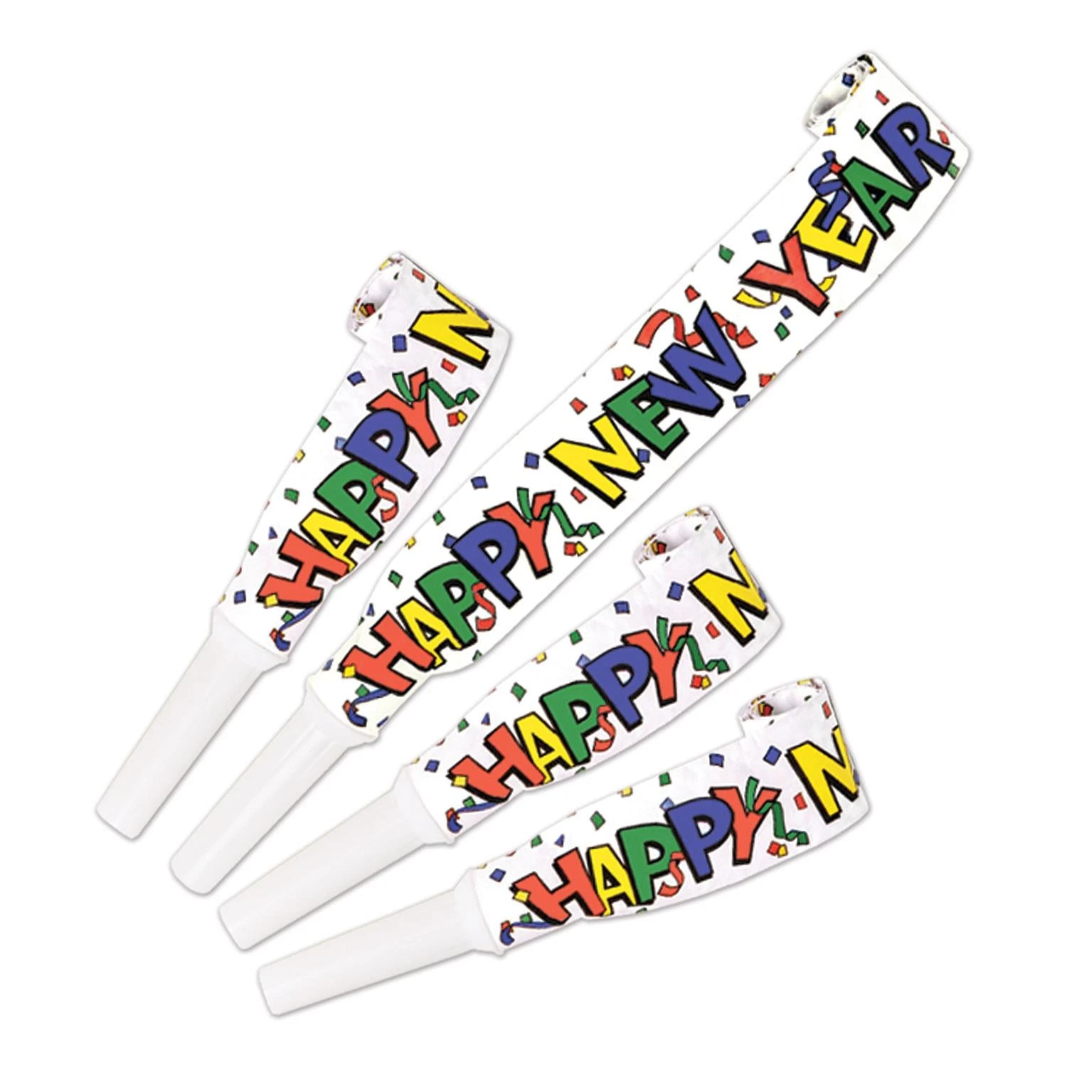 Product Description: Welcome in the New Year with Our Happy New Year Blowouts! This set of 100 blowouts, each 16 inches long, is great for party favors or just to have a bit of fun. Perfect for New Year’s Eve parties, these blowouts are sure to make some noise and add excitement to the night. With Our high quality, you can rest assured that they will last the night, and you won’t have to worry about them breaking. Get ready to bring in the New Year with some fun and excitement with Our Happy New Year Blowouts!