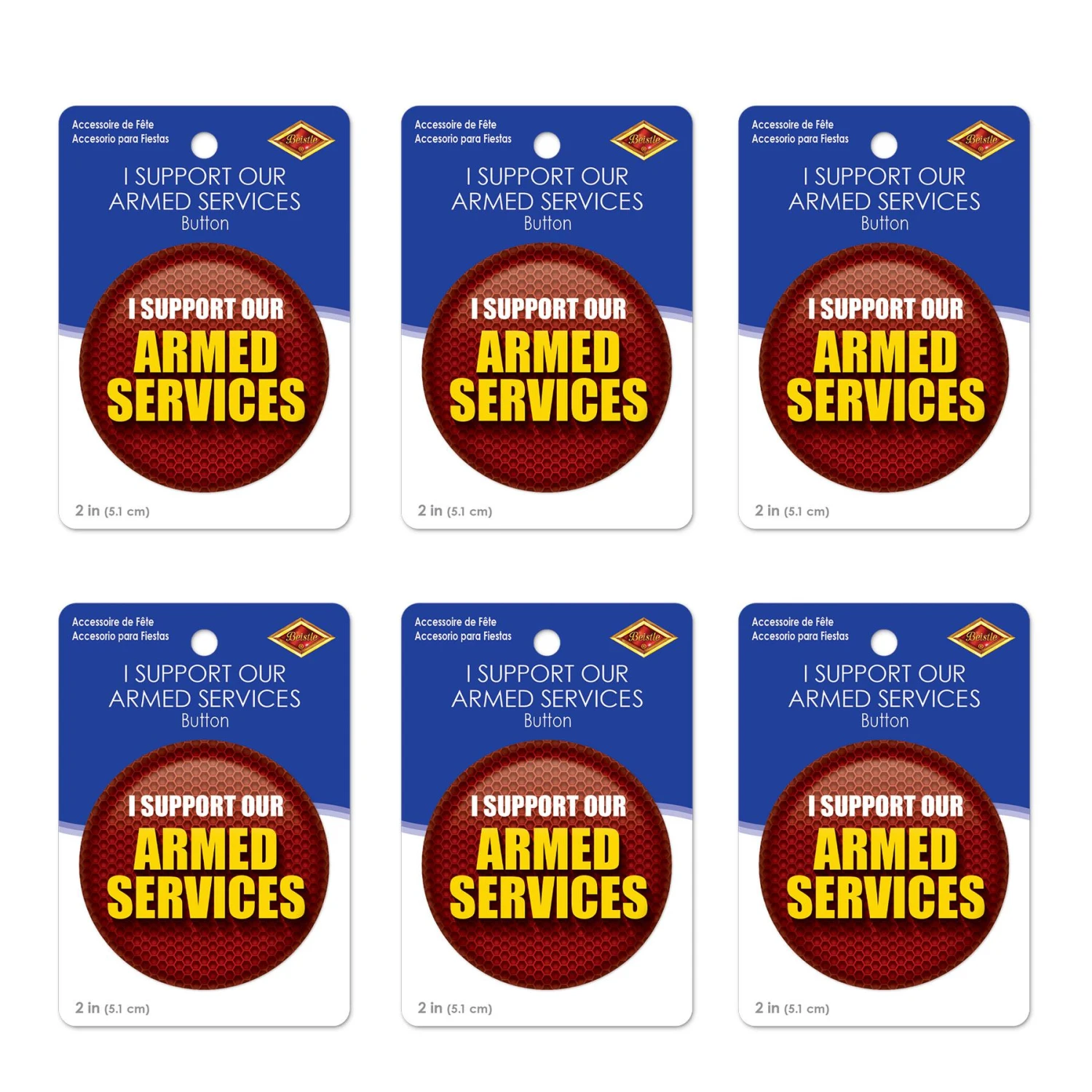 Product Description: This red I Support Our Armed Services Button is the perfect addition to any patriotic-themed party. Measuring 2 inches in diameter, this button is made of durable plastic and features a bold design that proudly displays your support for our brave men and women in the armed forces. Each package contains one button. This item is perfect for decorating at a 4th of July party, graduation celebration, or any other event where you want to show your patriotism. It ships from our Pennsylvania warehouse within one business day, so you can get it in time for your event. Show your support for the armed services with this I Support Our Armed Services Button from BulkPartySupplies.com.