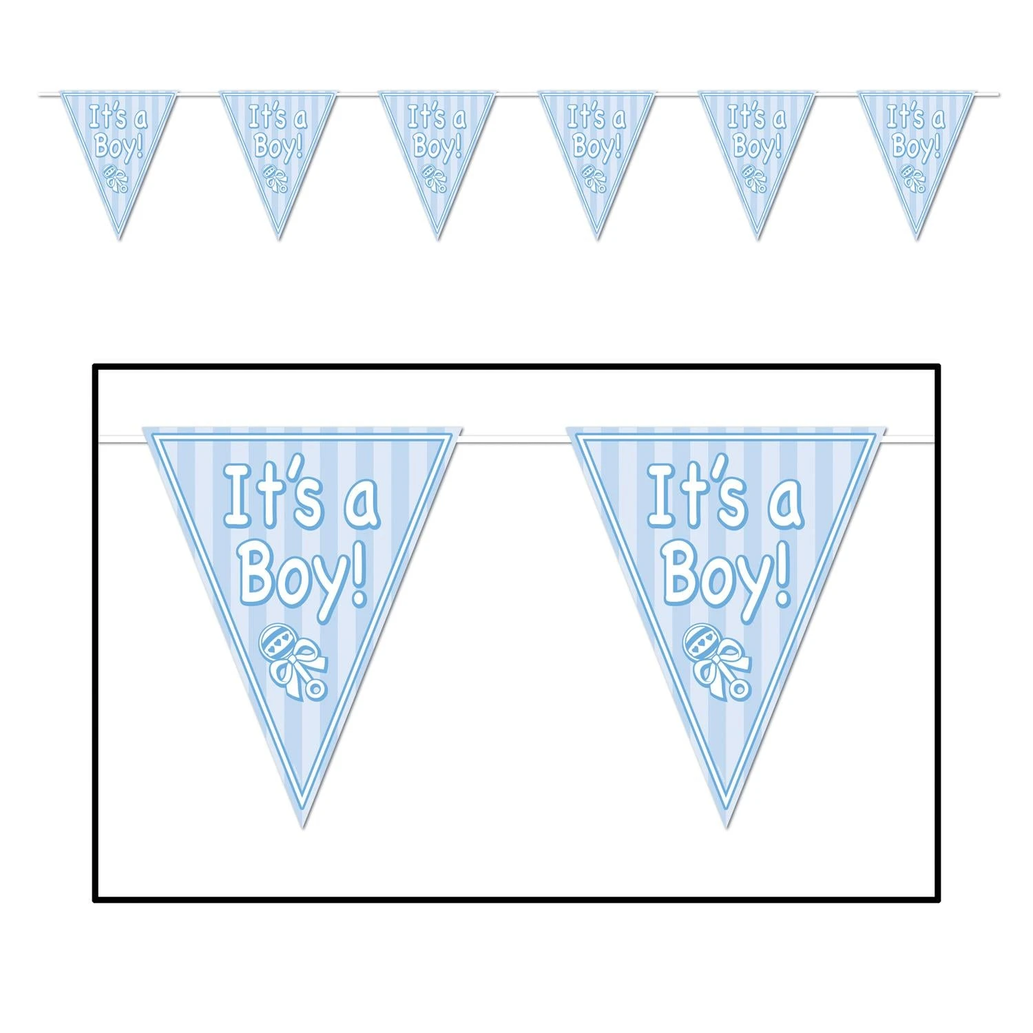 Product Description: Welcome the new bundle of joy with the It’s A Boy! Pennant Banner by BulkPartySupplies.com! This plastic all-weather banner is perfect for any baby shower and is sure to brighten up the occasion. The banner includes 12 pennants that measure 11″ x 12ft. each and is strung together on a string. The pennants are made of durable material, so you can be sure that your decorations will last for many years to come. The banner is a great addition to any baby shower and is sure to delight the guests. Plus, this item ships from our Pennsylvania warehouse within one business day, so you can have your decorations in no time. Make sure to check out the rest of our Baby Shower line of party decorations and party supplies, and get ready to celebrate the newest addition to your family!