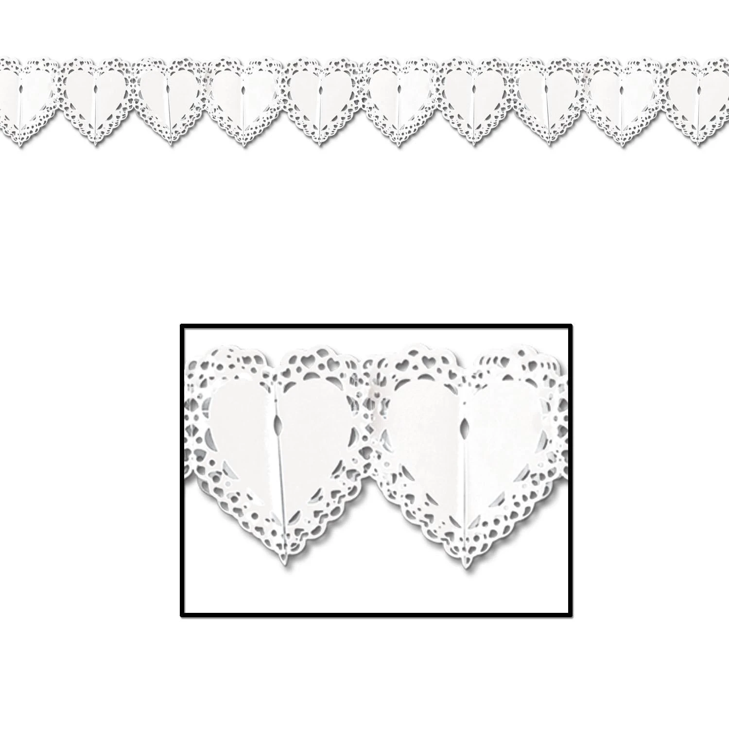 Product Description: This gorgeous Lace Heart Garland is the perfect decoration for your Valentines Day themed party. This high-quality garland is made of regular tissue and measures 7″ x 12′. The package contains one garland and is shipped from the Pennsylvania warehouse within one business day. The beautiful lace design and bright colors of this garland will add a romantic touch to any party. Hang them around the room or wrap them around the banisters to create a festive atmosphere. This garland is sure to be a hit with your guests and will be a great way to celebrate your special day. So make sure to get your Lace Heart Garland and make your Valentines Day celebration extra special.