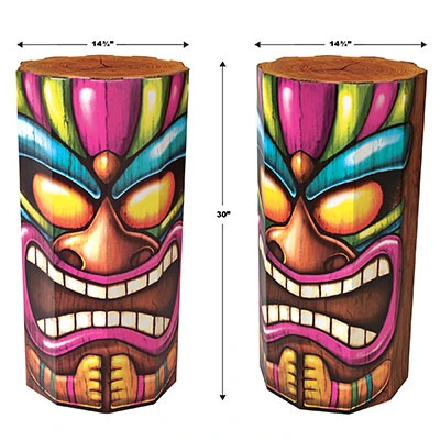 - Complete the look with 2 3-D tiki props (30 Inches x 14.75 Inches each), enhancing the luau ambiance.