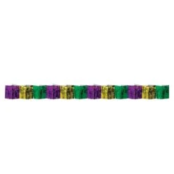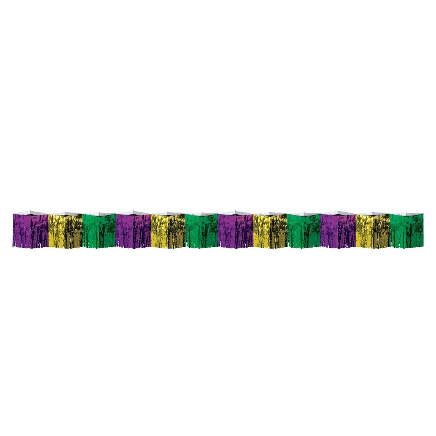 Details: These discount Mardi Gras Decorations are perfect for your next Mardi Gras Themed Party! Size: 12”x 12′. gold green purple diamond-cut fringe. (1/package) .
