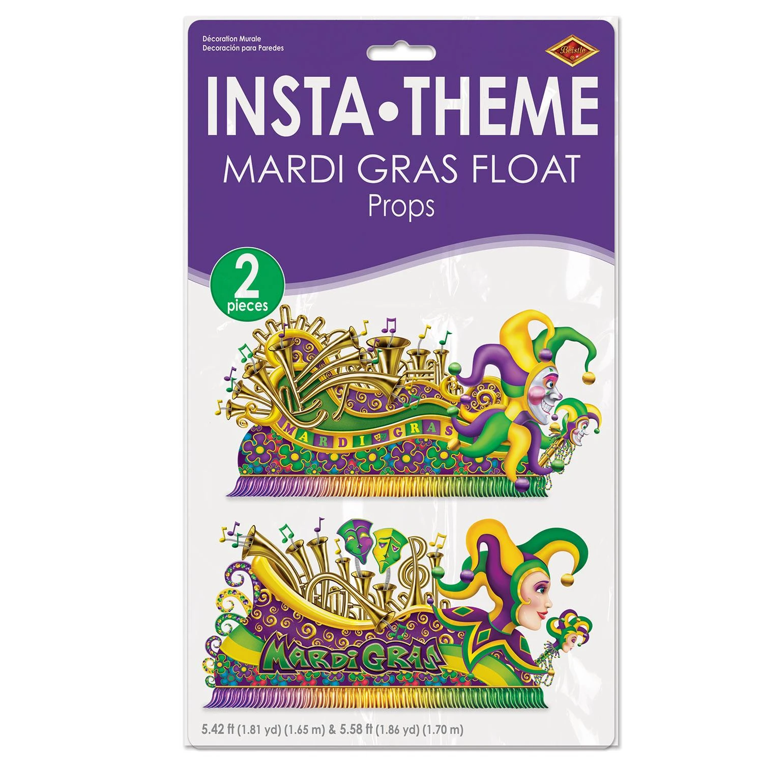 Bring the spirit of Mardi Gras to your next event with these amazing Insta-Theme Mardi Gras Float Props by BulkPartySupplies.com! Measuring 5′ 5″ and 5′ 7″ respectively, these stunning props are perfect for any Mardi Gras-themed party. The props feature an assortment of Mardi Gras-inspired images. The vibrant colors are sure to make a statement and bring the spirit of Mardi Gras to your event. The props come in packages of two, with 12 packages per case. UPC 034689520481. Add these Mardi Gras Float Props to your event decorations and make it an unforgettable Mardi Gras celebration!