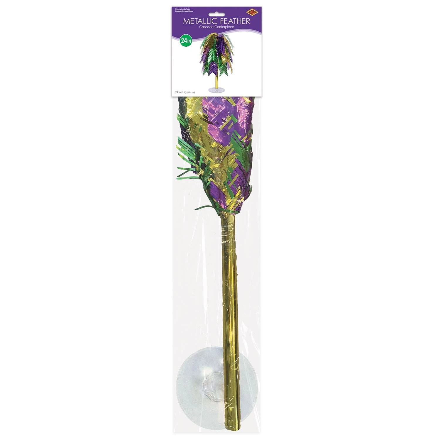 This Metallic Cascade Centerpiece is the perfect way to add a touch of glamour to your next party. It is the ideal size for a Mardi Gras celebration, measuring 24″ high. This spectacular centerpiece is crafted with shades of gold, green, and purple to match any decor. It is sure to wow your guests and make your occasion extra special. This package includes one cascade centerpiece. It is also available in cases of 6 centerpieces, perfect for larger events. The eye-catching design and vibrant colors of this cascade centerpiece will add a festive air to any gathering. This is the perfect way to make a statement at your next Mardi Gras party. Add this Metallic Cascade Centerpiece to your party decorations and make it an occasion to remember.