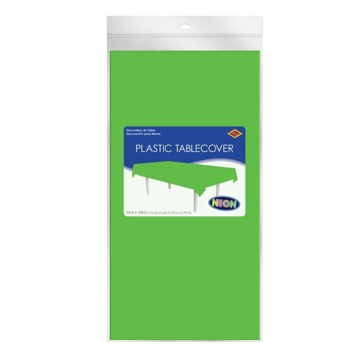 Our Neon Lime Plastic Rectangular Tablecover is the perfect addition to your general occasion, birthday, or 80’s events. These tableware are ideal for creating a festive atmosphere. With dimensions of 54 inch x 108 inch and packaging of 1/package, each case includes 12 packages, making it easy to cater to gatherings of any size. These versatile items enhance the ambiance of any celebration.