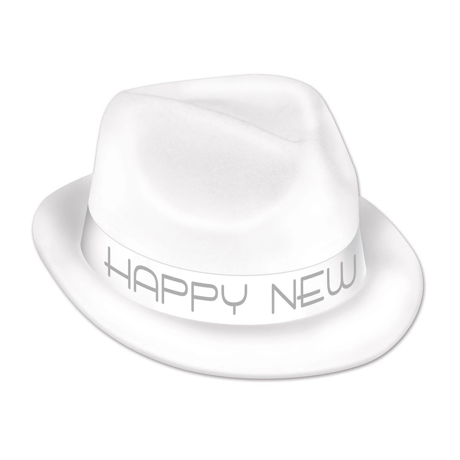 Product Description: Make sure all your boys are looking their best when they come to your New Year’s Eve party with our Chairman White Hats! With 25 hats in a bulk pack, everyone can join in the fun! These white and silver plastic-backed velour hats feature a one-size-fits-most design, so no one has to miss out on the festivities. Get ready to celebrate in style with our Chairman White Hats! UPC: 034689070665.