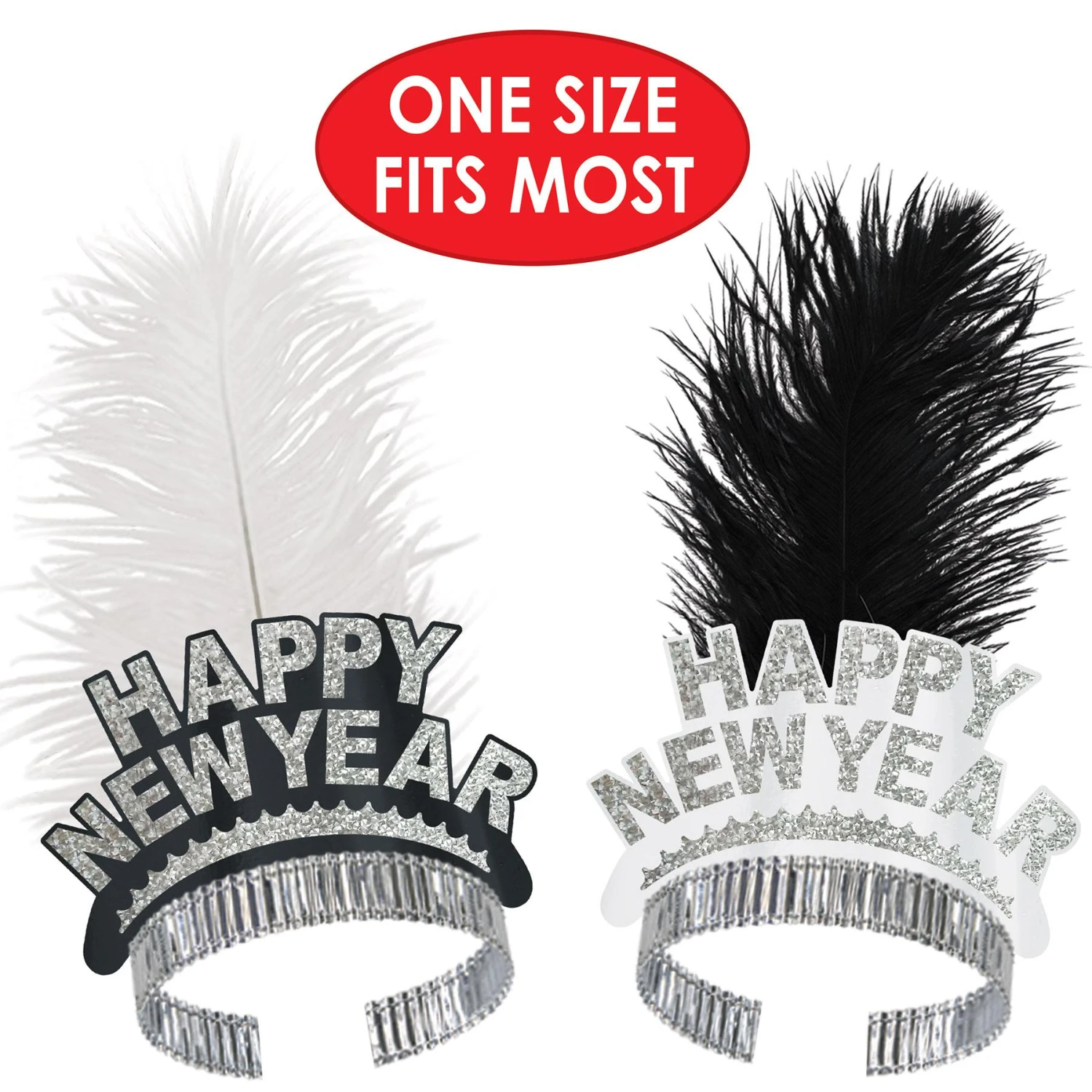Product Description: Ring in the New Year with the Chicago Swing Tiara! This festive accessory is the perfect way to add a bit of sparkle and shine to your New Year’s Eve celebration. The classic black and white design will match any festive outfit and the feather and glitter add a touch of whimsy. The tiaras are made with high-quality materials and are sure to last throughout the night. Plus, you get one tiara Per Package, so you can ensure everyone has a chance to enjoy the fun. The Chicago Swing Tiara is shipped from our Pennsylvania warehouse within one business day and is a great addition to any New Year’s Eve theme party. Make sure to get your Chicago Swing Tiara today and start the New Year off in style!
