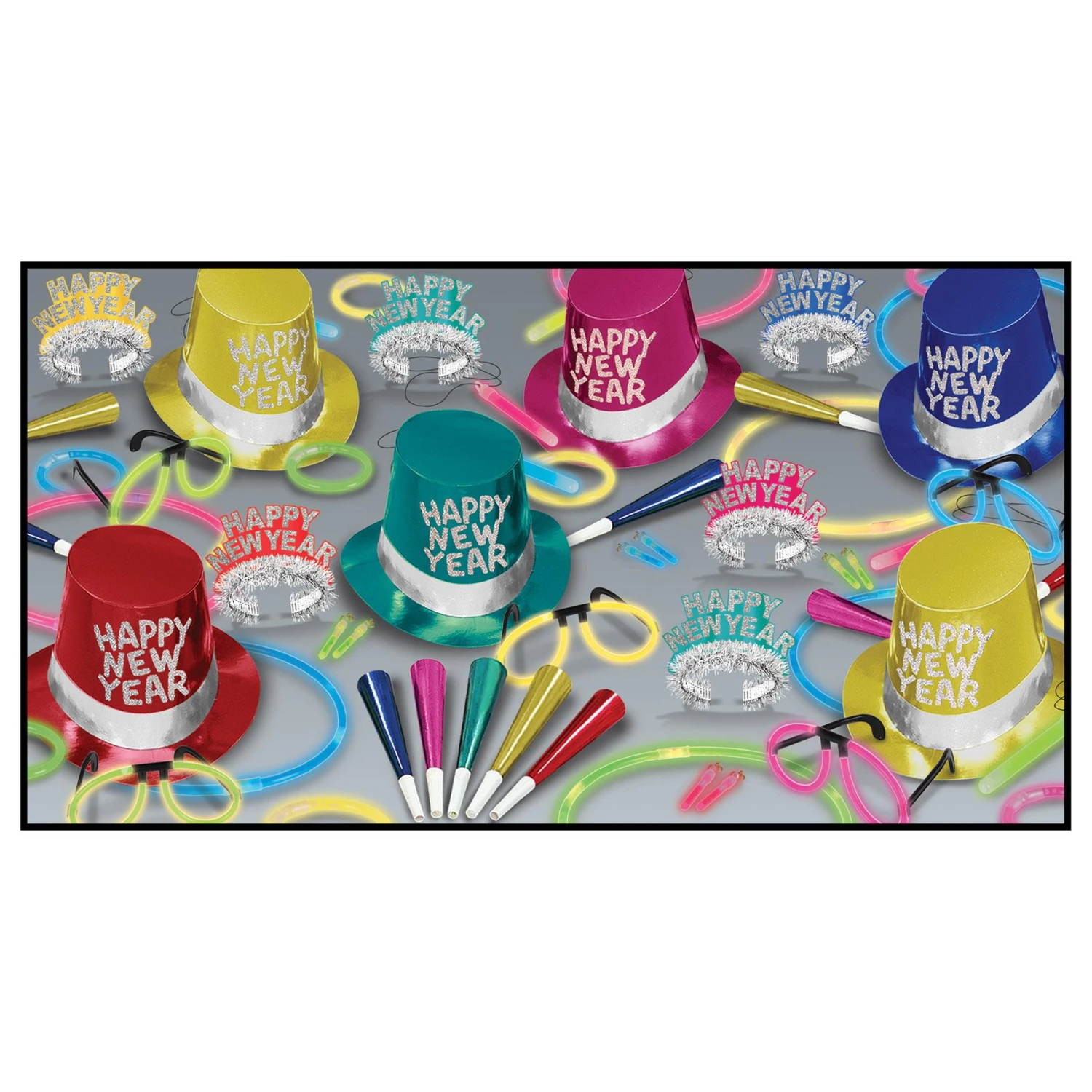 Ring in the New Year with the Multi-Color Glow Party Assortment for 50 People from BulkPartySupplies.com! This kit includes glittered foil hi-hats, fringed tiaras, foil horns, and glow accessories to create a vibrant and glowing celebration. Perfect for any party of 50 guests, this assortment is designed to make your New Year’s Eve celebration shine. With quick shipping from our Pennsylvania warehouse, your party supplies will arrive in time for the big event. Make your New Year’s Eve unforgettable with the Multi-Color Glow Party Assortment!
