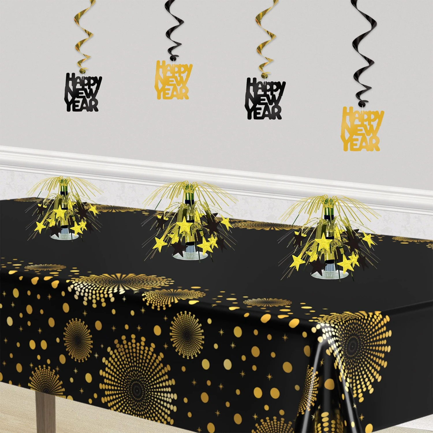 New Year’s Eve Star Mini Cascade Centerpiece – Black & Gold