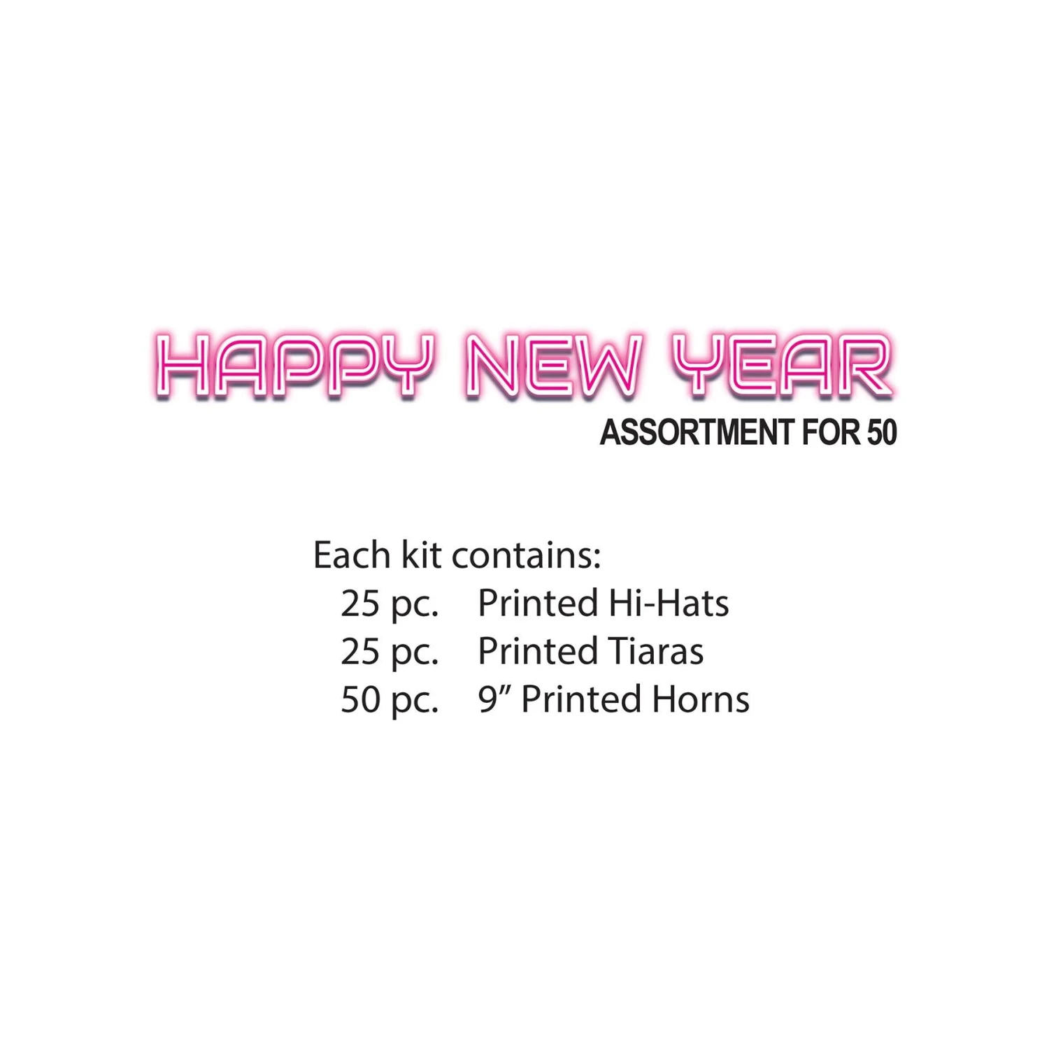Celebrate the New Year in style with the New Year’s Rave Party Kit for 50 People from BulkPartySupplies.com! This kit provides all the essentials you need to host a fun and memorable New Year’s Eve party. With 25 printed hi-hats, 25 printed tiaras, and 50 9-inch printed horns, your guests will be ready to ring in the New Year with excitement. This kit ships quickly from our Pennsylvania warehouse, ensuring your supplies arrive in time for the big night. Get the New Year’s Rave Party Kit for 50 People today and make your New Year’s Eve celebration unforgettable!