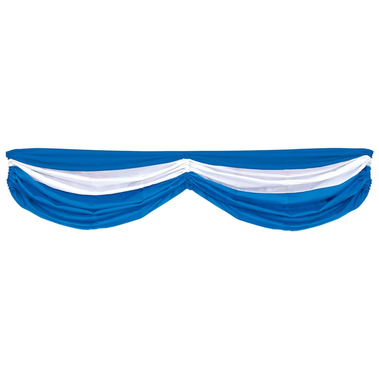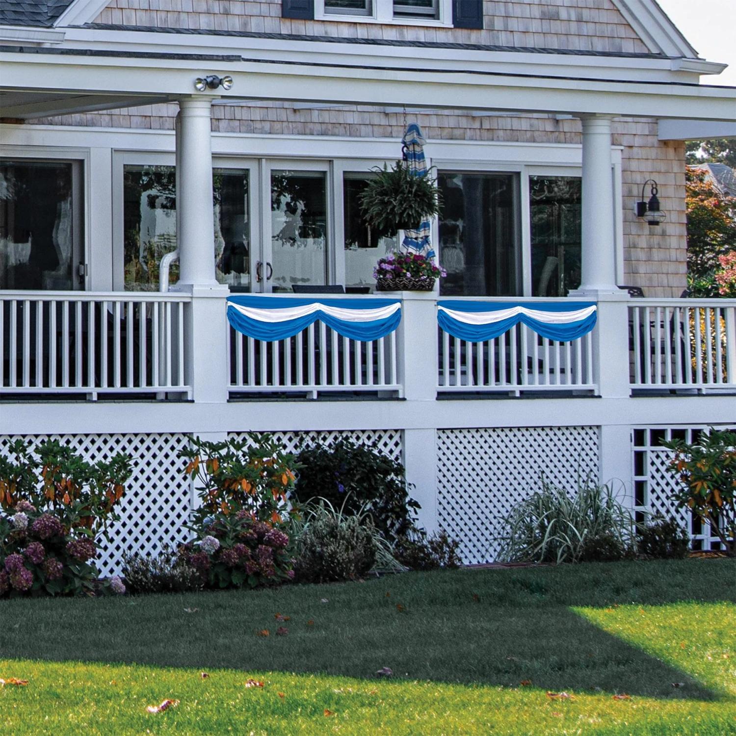 Details: Whether you are planning an inaugural party or Oktoberfest celebration this fabric bunting is a great way to decorate a porch deck or beer garden! This blue and white fabric bunting includes an adjustable drawstrings to make for a perfect fit. Each section is 5′ 10”. You will get 6 sections/panels in each full case you buy.