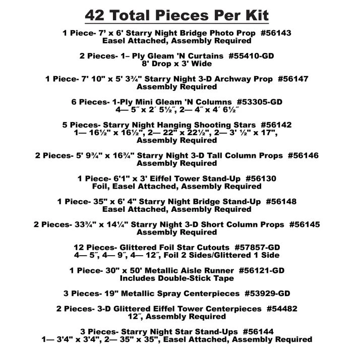 Prepare to be swept off your feet as we transport you and your classmates to the enchanting streets of Paris. Our Paris-themed Prom Kit is your passport to a night filled with unparalleled elegance, sophistication, and unforgettable memories. With a lavish array of 42 meticulously curated pieces, this kit is designed to immerse you in the romance of Paris and set the stage for a high school prom like no other.