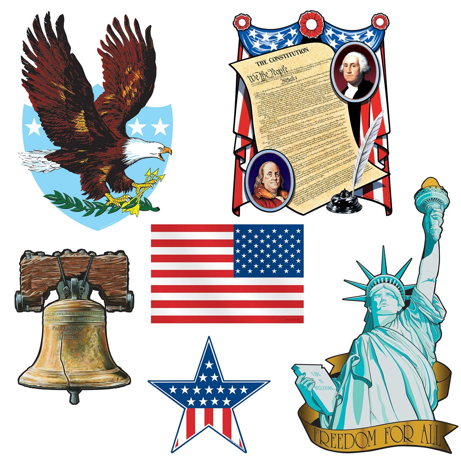 Product Description: You get a Pack of 72 – Patriotic Cutouts in each full case you buy. The Patriotic Cutouts come (6/Package) and there are 12 packages in each case for a total of 72 per case! printed 2 sides. Size: 8″-18″