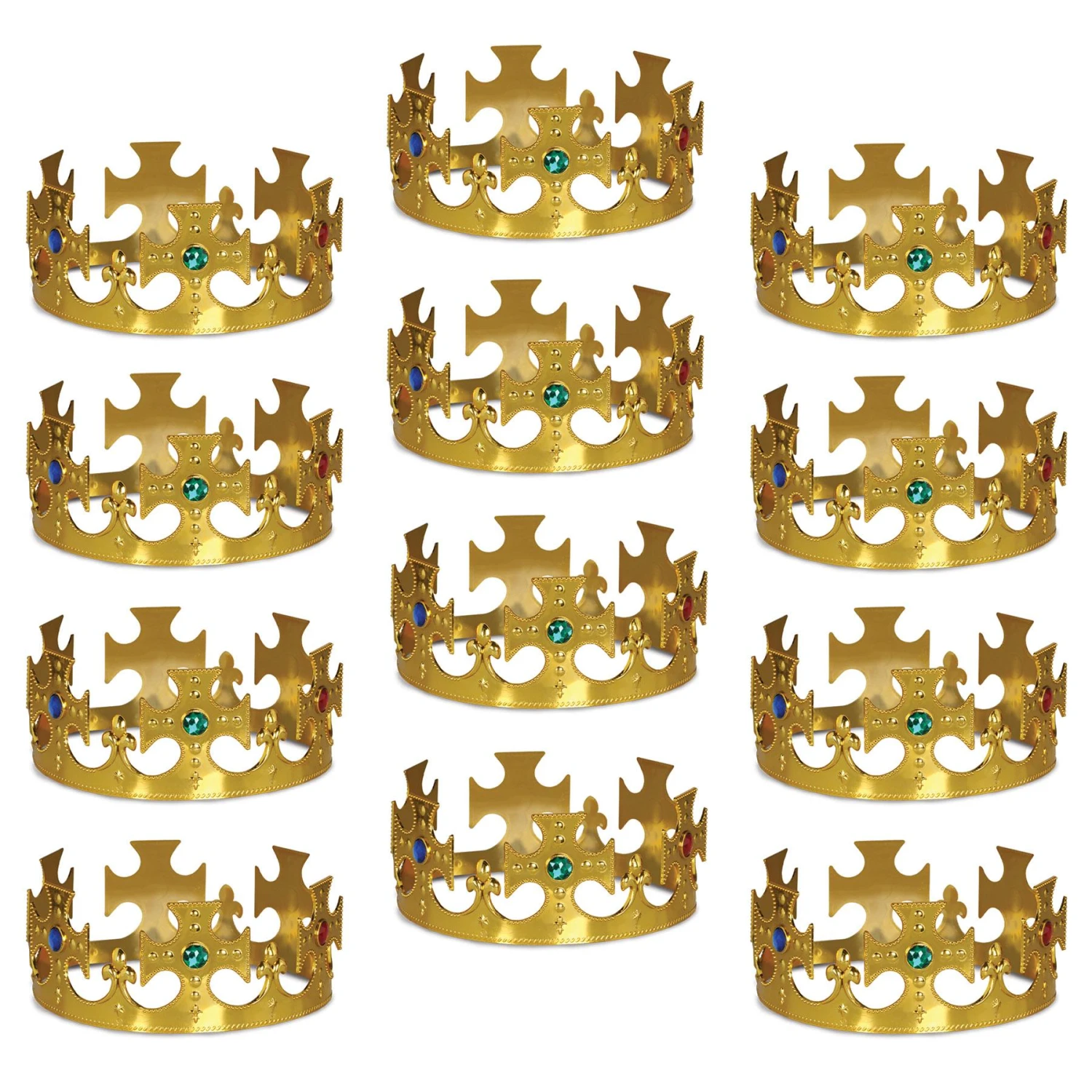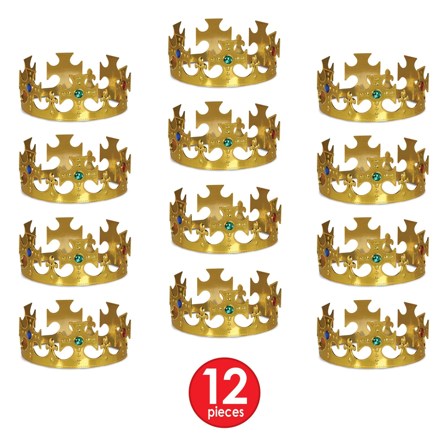 Details: Be a king for a day in our gold Jeweled King Crown! This crown is adjustable! Take your guests back to a time of chivalry and knights with these Medieval Themed Party Supplies! 1 Crown Per Package or 12 Crowns Per Case!