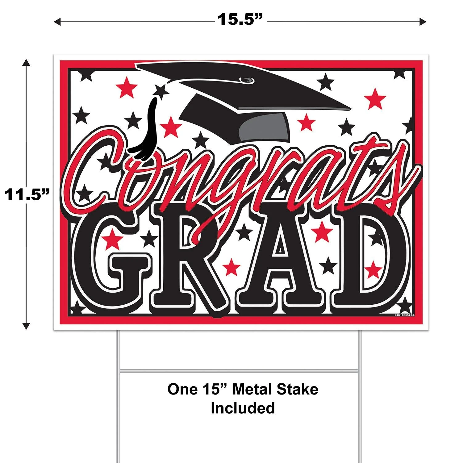 Product Description: The Plastic Red Congrats Grad Yard Sign is the perfect way to celebrate your graduate’s special achievement. This set of 6 signs comes in a durable red plastic construction and includes a metal H stake for easy installation. Each sign measures 11.5 inches x 15.5 inches and is built to withstand all weather conditions. A bit of assembly is required, but it’s easy to do. These signs are perfect for any graduation-themed party, and with a purchase of a case of 6, you can save money too! Celebrate your grad’s success in style with the Plastic Congrats Grad Yard Sign from BulkPartySupplies.com.
