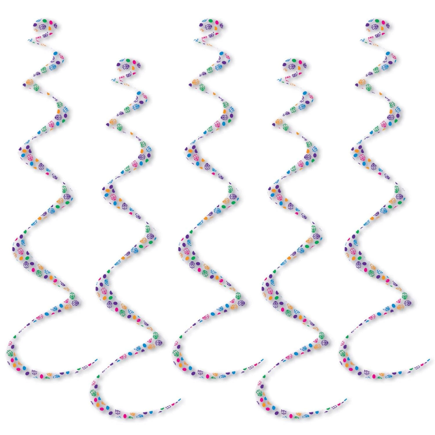 Product Description: Bring some Easter cheer to your next gathering with the Printed Easter Egg Twirly Whirlys! This 5-pack of decorations is sure to make your event a hit. Each 24-inch whirly measures 24-inches long and features a colorful printed Easter egg design. Hang them from the ceiling and watch as they twirl and whirl in the air. These decorations are perfect for any Easter theme party, and you can hang them indoors or outdoors. And best of all, the Printed Easter Egg Twirly Whirlys ships from our Pennsylvania warehouse within one business day. Get your event hopping with this festive decoration – order your Printed Easter Egg Twirly Whirlys today!