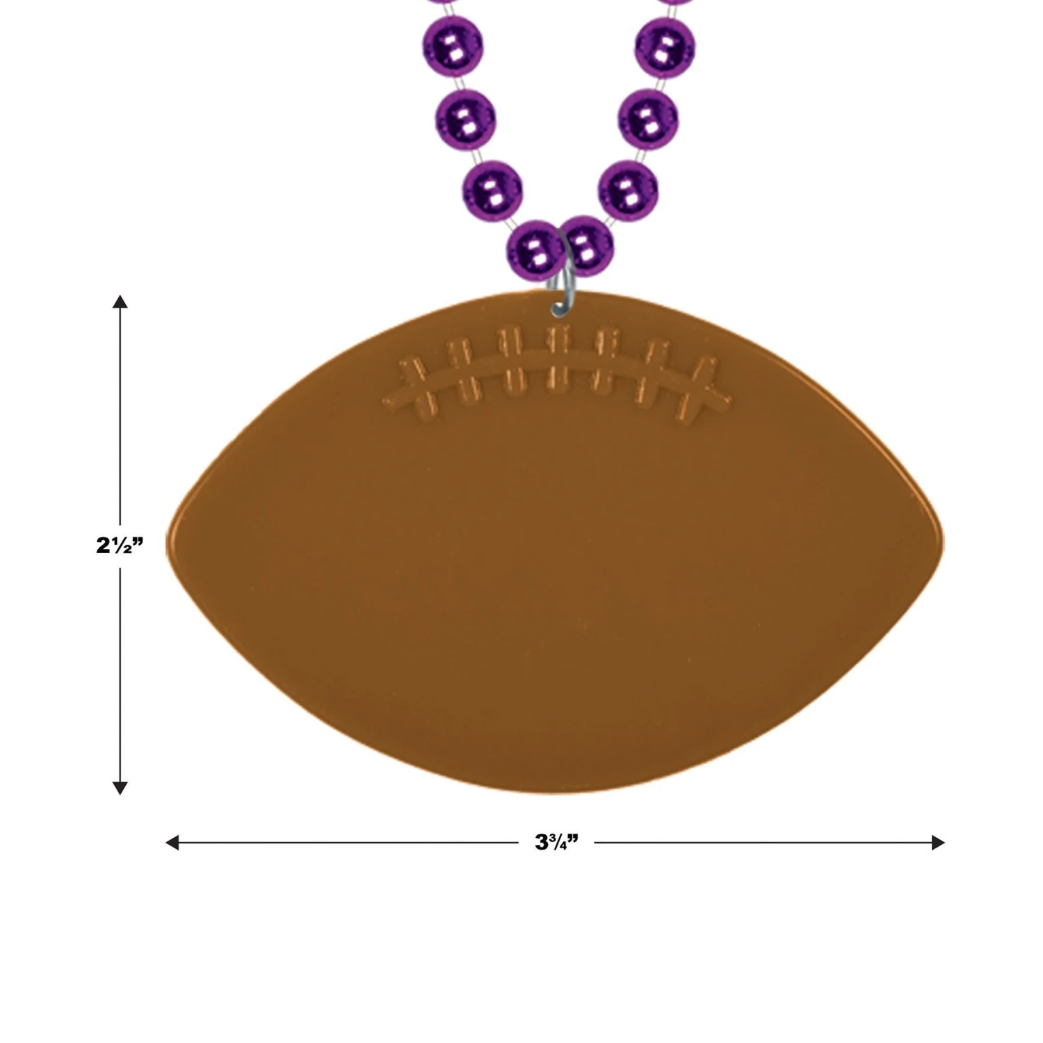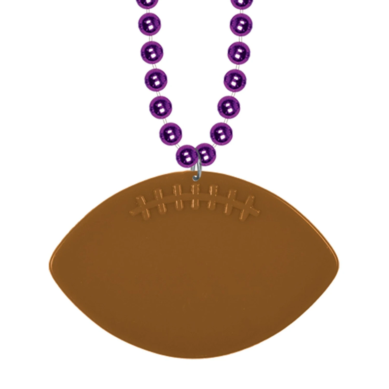 Purple Party Bead Necklaces With Football Medallion (12 Per Case)