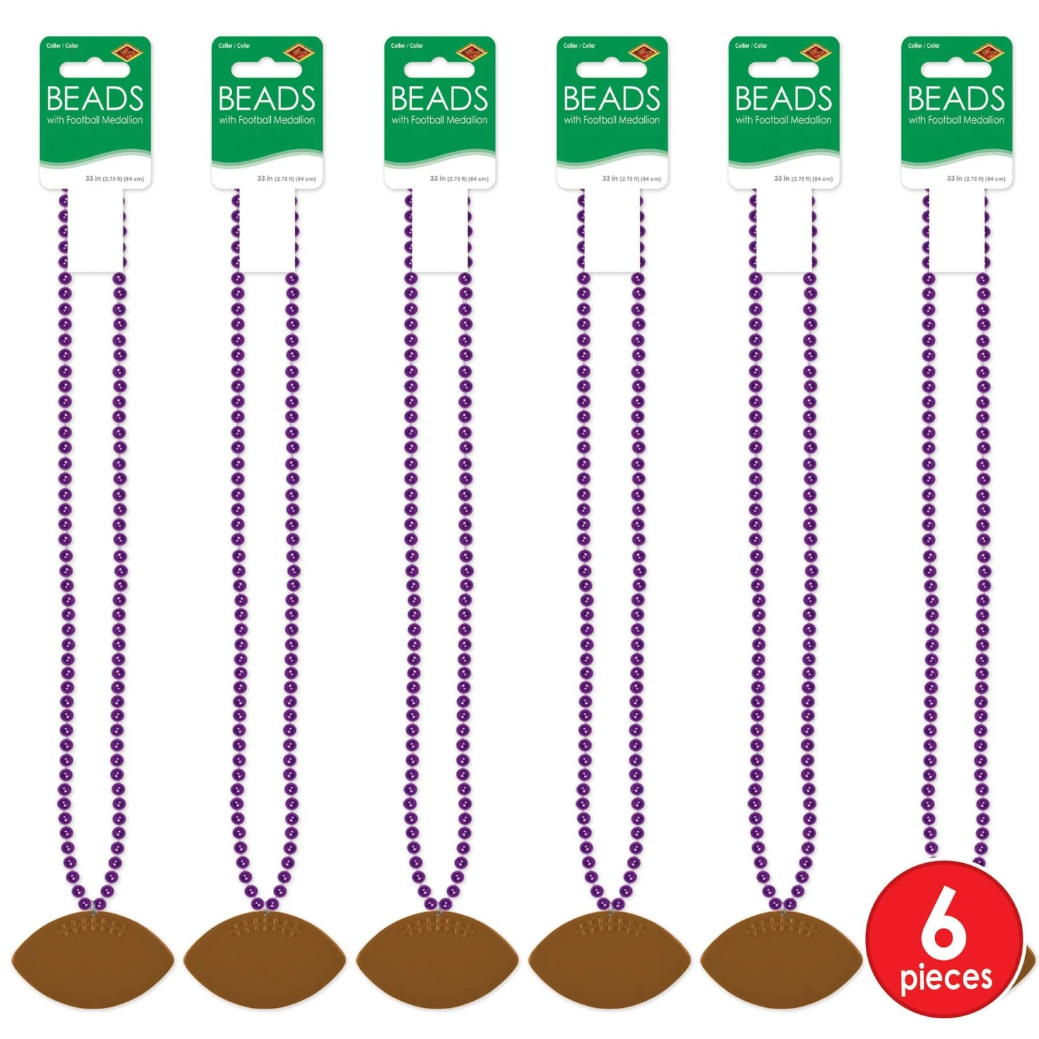 Product Description: Our Purple Bead Necklaces with Football Medallion (Case of 12) is the perfect item to add to your sports themed party. Each package contains 33 inch long purple beads with a football medallion that will show your team spirit. The package contains 12 packages per case, making it easy to hand out to your guests. These beads are sure to make your party a hit! They also make great party favors. Plus, with Our fast shipping, you can rest assured that your order will arrive within one business day from their Pennsylvania warehouse. Show your team spirit and add these Purple Bead Necklaces with Football Medallion (Case of 12) to your shopping cart today!