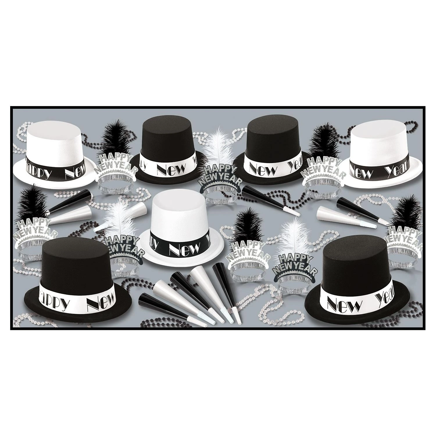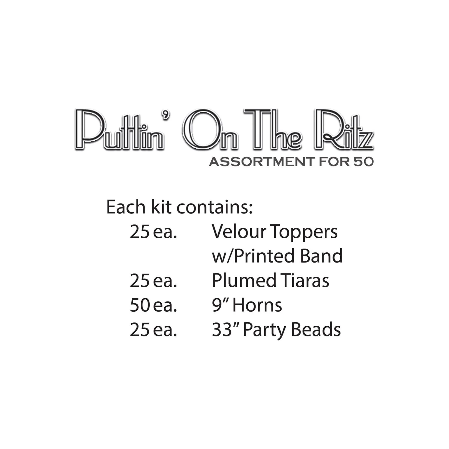 Welcome in the New Year with style using the Puttin’ On The Ritz New Year’s Eve Party Kit for 50 People from BulkPartySupplies.com! This luxurious all-in-one kit features velour toppers, glittered plumed tiaras, foil horns, and party bead necklaces, ensuring your guests are dressed to impress. With these high-quality accessories, you’ll be able to create an unforgettable night. The kit ships quickly from the Pennsylvania warehouse, so order today and get ready to put on the Ritz for your New Year’s Eve celebration!
