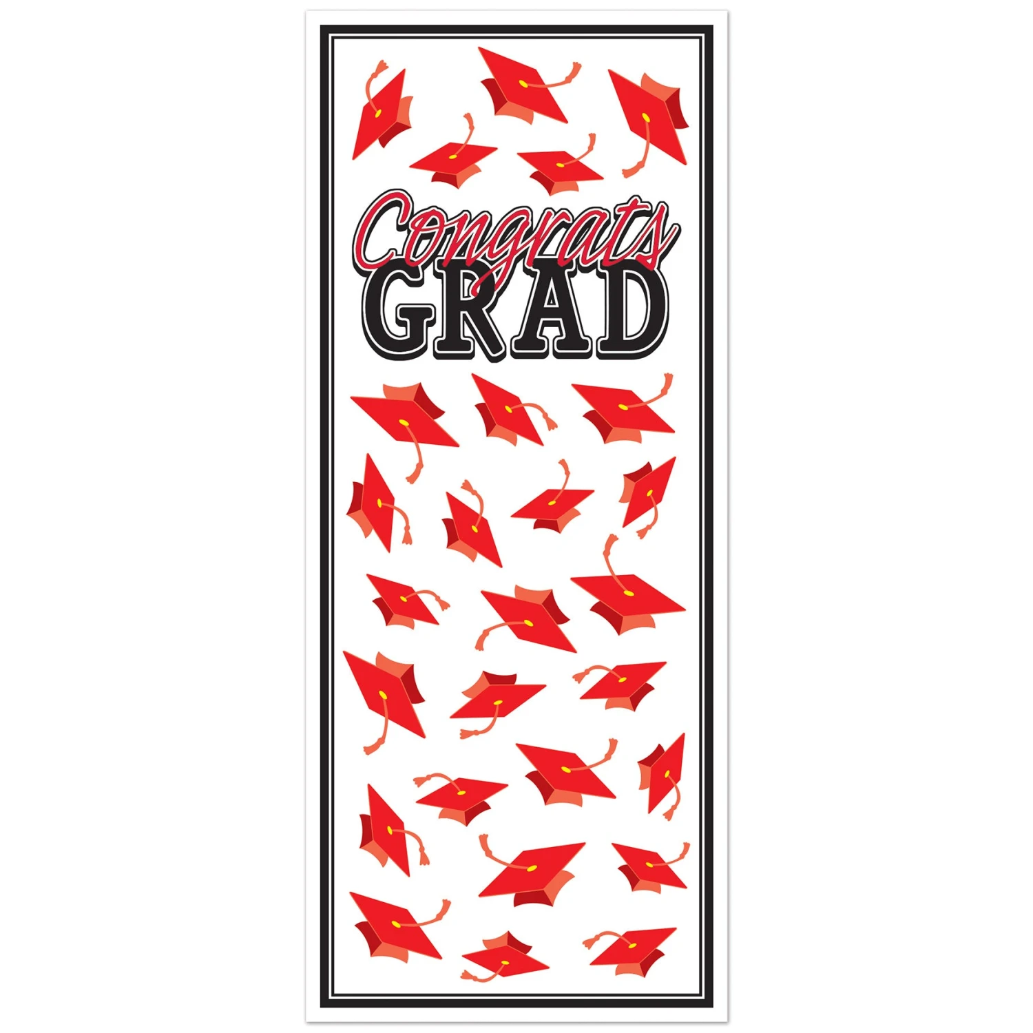 Our Red Congrats Grad Door Cover is the perfect addition to your graduation events. These hanging decorations are ideal for creating a festive atmosphere. With dimensions of 6ft x 30 inch and packaging of 1/package, each case includes 12 packages, making it easy to cater to gatherings of any size. These versatile items enhance the ambiance of any celebration. Red; all-weather.