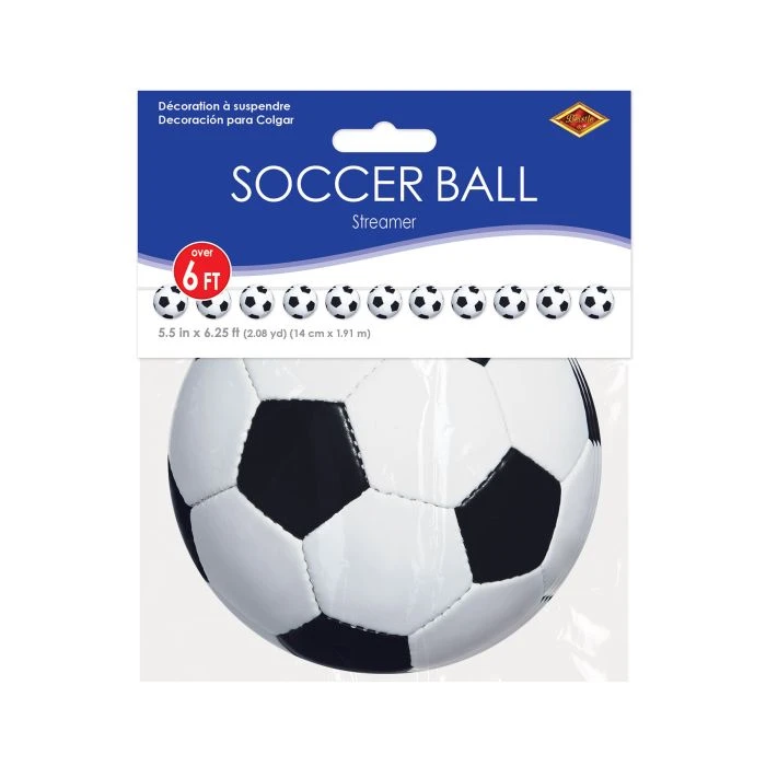 Our Soccer Ball Streamer is the perfect addition to your soccer, sports events. These banners are ideal for creating a festive atmosphere. With dimensions of 5.5 inch x 6ft 3 inch and packaging of 1/package, each case includes 12 packages, making it easy to cater to gatherings of any size. These versatile items enhance the ambiance of any celebration. Printed 2 sides; assembly required.