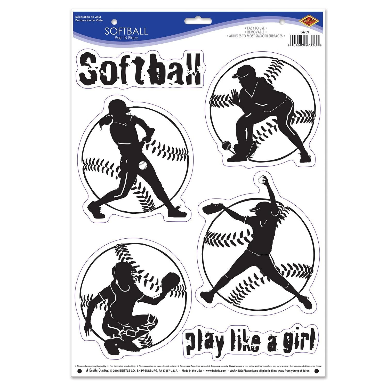 Softball Party Peel ‘N Place Clings (6 Per Package)
