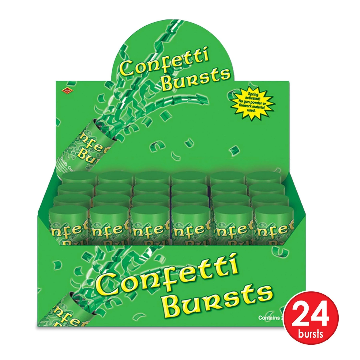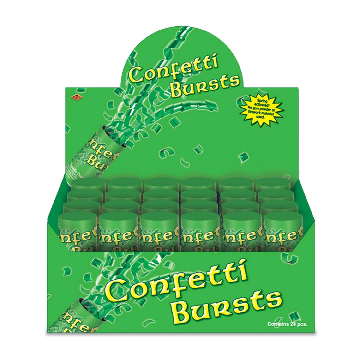 Our St Patrick’s Day Confetti Bursts are the perfect way to add some Irish spirit to your next party. These colorful confetti bursts come in a 24-pack case and contain a blend of emerald green and golden yellow tissue paper pieces in a festive shamrock shape. The bright colors and cheerful design make these confetti bursts ideal for festive decorating, party games, and more. Each burst is easy to disperse, simply open the package and twist to release the colorful confetti. This fun decoration is sure to bring the luck of the Irish to your St. Patrick’s Day celebration. UPC: 034689309000.