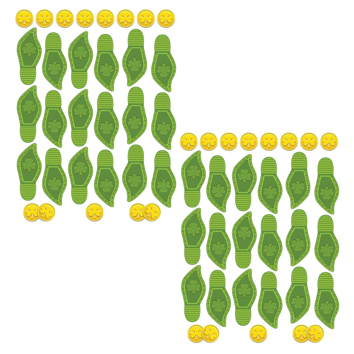 Product Description: Our Leprechaun Footprints & Coins PNP is the perfect addition to any St. Patricks Day celebration. Each package contains a 12″ x 17″ sheet with 29 pieces of Peel ‘N Place Clings. The design features leprechaun footprints with gold coins scattered throughout for a festive look. With 12 packages per case, you can easily decorate any space for a party or special event. Our Leprechaun Footprints & Coins PNP is perfect for creating a fun and festive atmosphere and is sure to be a hit at any St. Patrick’s Day celebration.