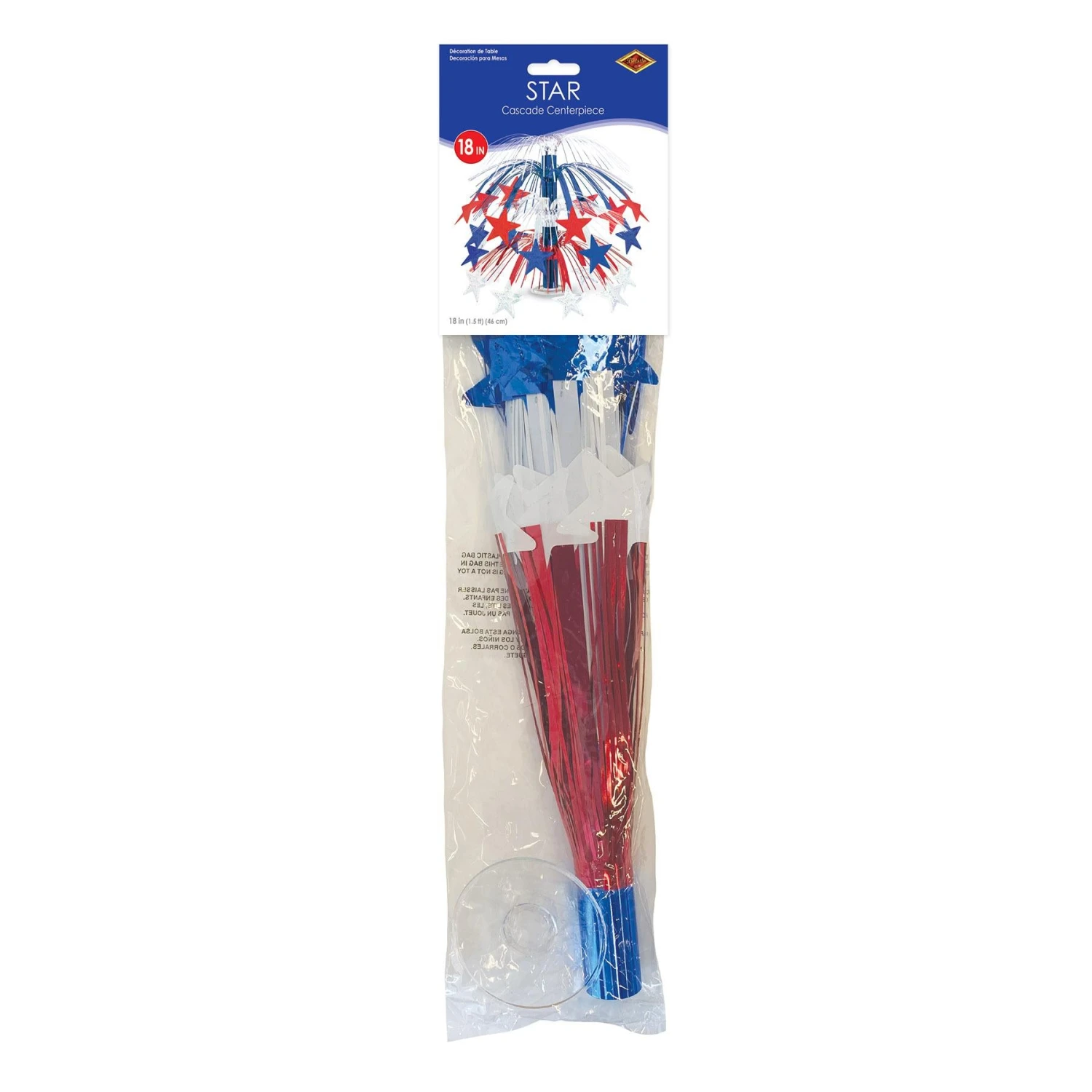 Details: Need a centerpiece for the tables at your 4th of July party? Well here you go! This red white and blue centerpiece is exactly what you need. It stands 18 inches tall. Size: 18 Inch. Individually packaged: (1/package). Pieces/packages per Case: 6.