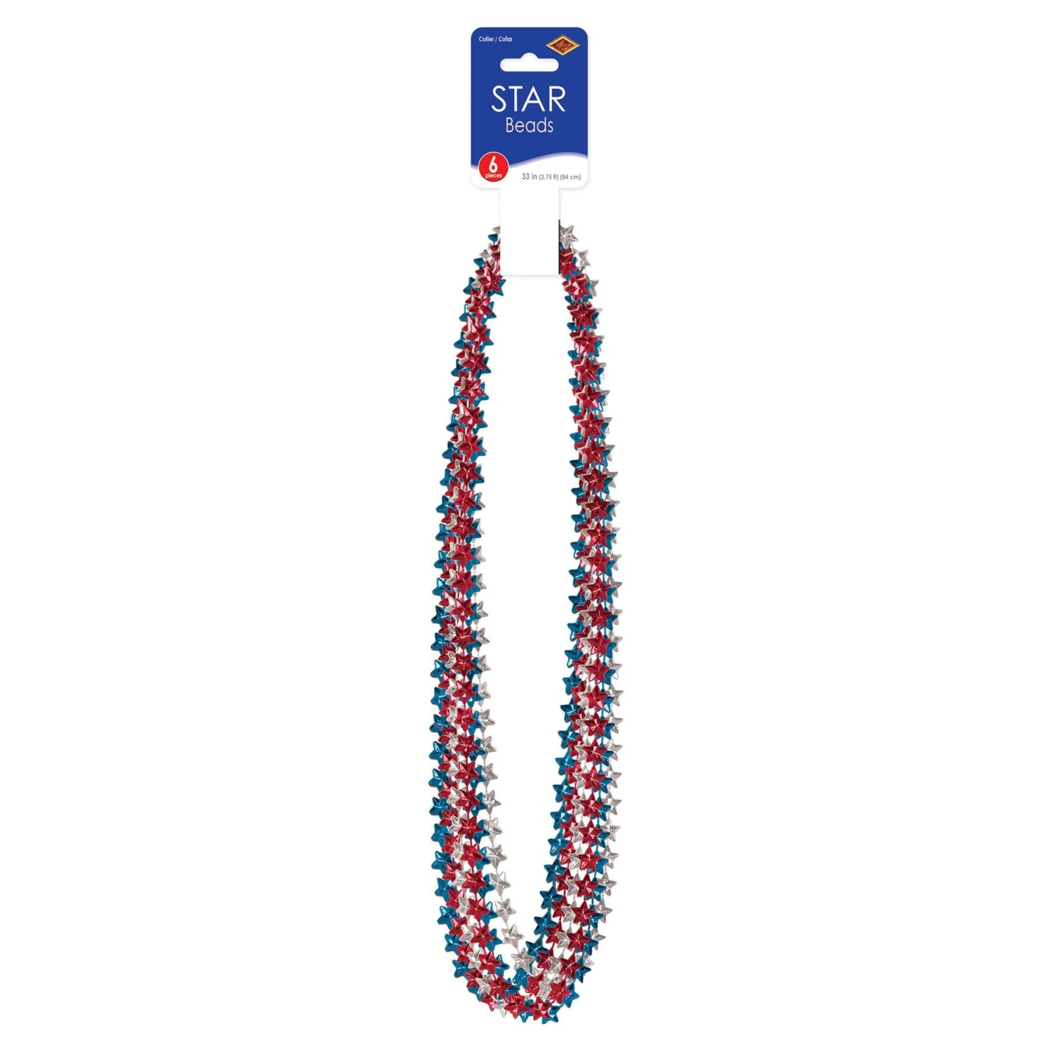 Product Description: The Star Bead Necklaces are perfect for creating fun and festive decorations for patriotic themed parties. Each package contains 6 star-shaped beads in assorted red, silver, and blue colors. The beads measure 33″ in size, making them perfect for making necklaces, garlands, and more. These star beads are sure to create an eye-catching and memorable atmosphere for your celebration. Plus, these beads are shipped from our Pennsylvania warehouse within one business day, so you can rest assured that they will arrive on time. Add a touch of patriotism to your celebration with the Star Bead Necklaces from BulkPartySupplies.com.
