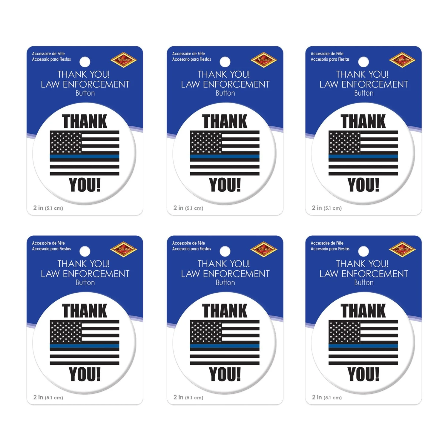 Product Description: Show your appreciation for those in law enforcement with the Thank You! Law Enforcement Button from BulkPartySupplies.com. This 2 inch button is the perfect addition to your Patriotic or 4th of July themed party supplies. It is made of high quality materials, making it sure to last through the entire event. With just one click, you can show your gratitude to those who serve and protect. The Thank You! Law Enforcement Button is also great for Diploma Mill Awards or other printed buttons. So show your appreciation and order one today, shipped from Pennsylvania warehouse within one business day!